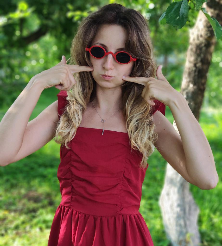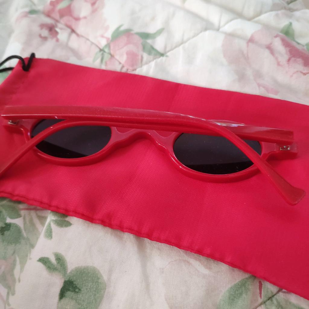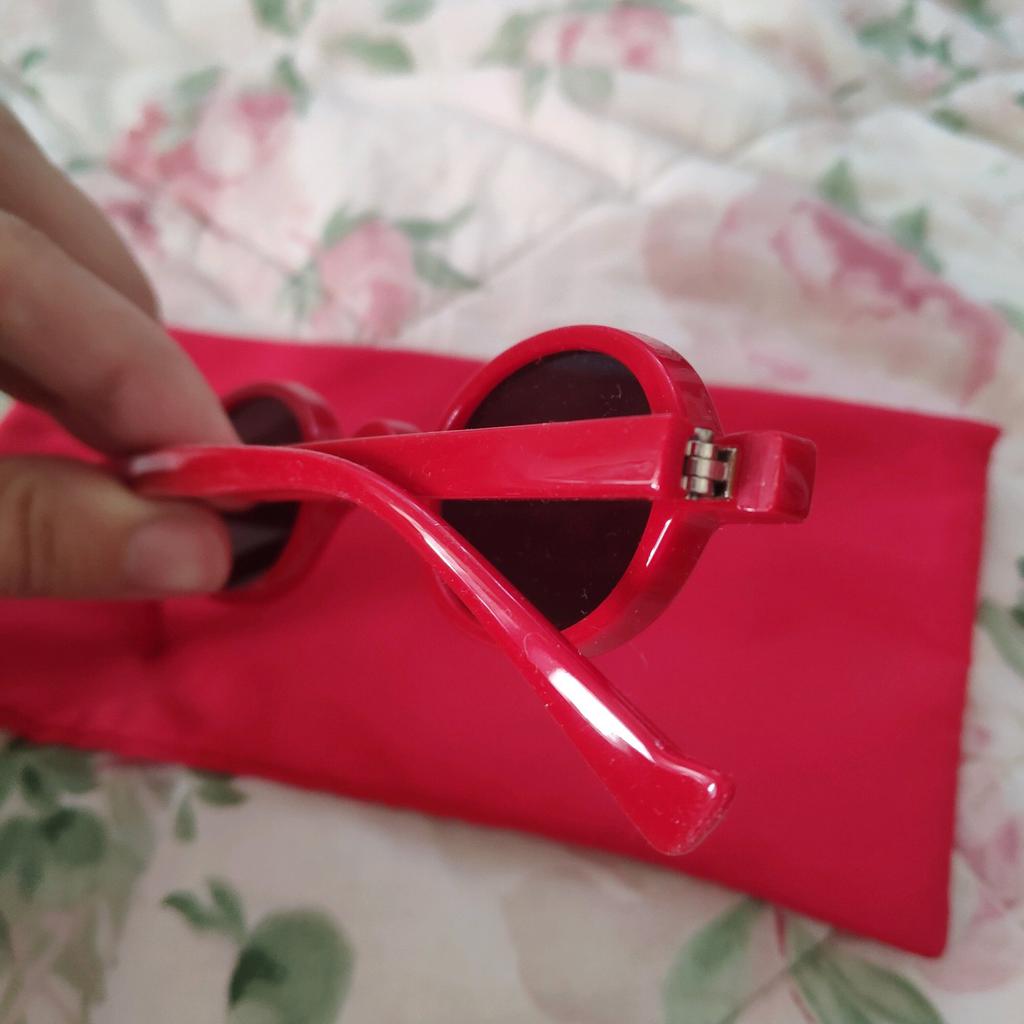 Bella Hadid 's style sunglasses Delivery is two weeks, packing box, storage case included and care fabric cut. Points are very good quality. This is plastic, the lenses are also plastic. The screw is recessed deep, the arms are moved apart with effort. I ordered leopard, but now I want the same red, super stylish glasses