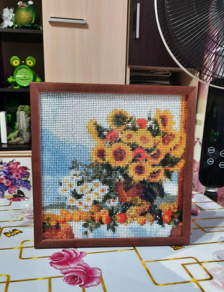 Everything arrived clean, I'm thrilled. I highly recommend this diamond painting. Relaxing and addictive. There are already finished ones in the picture frame. looks so great