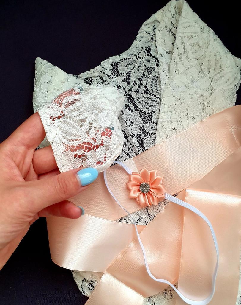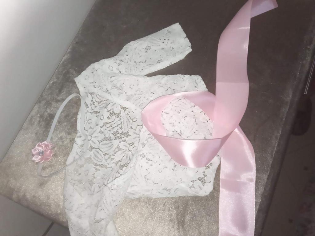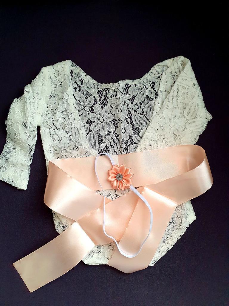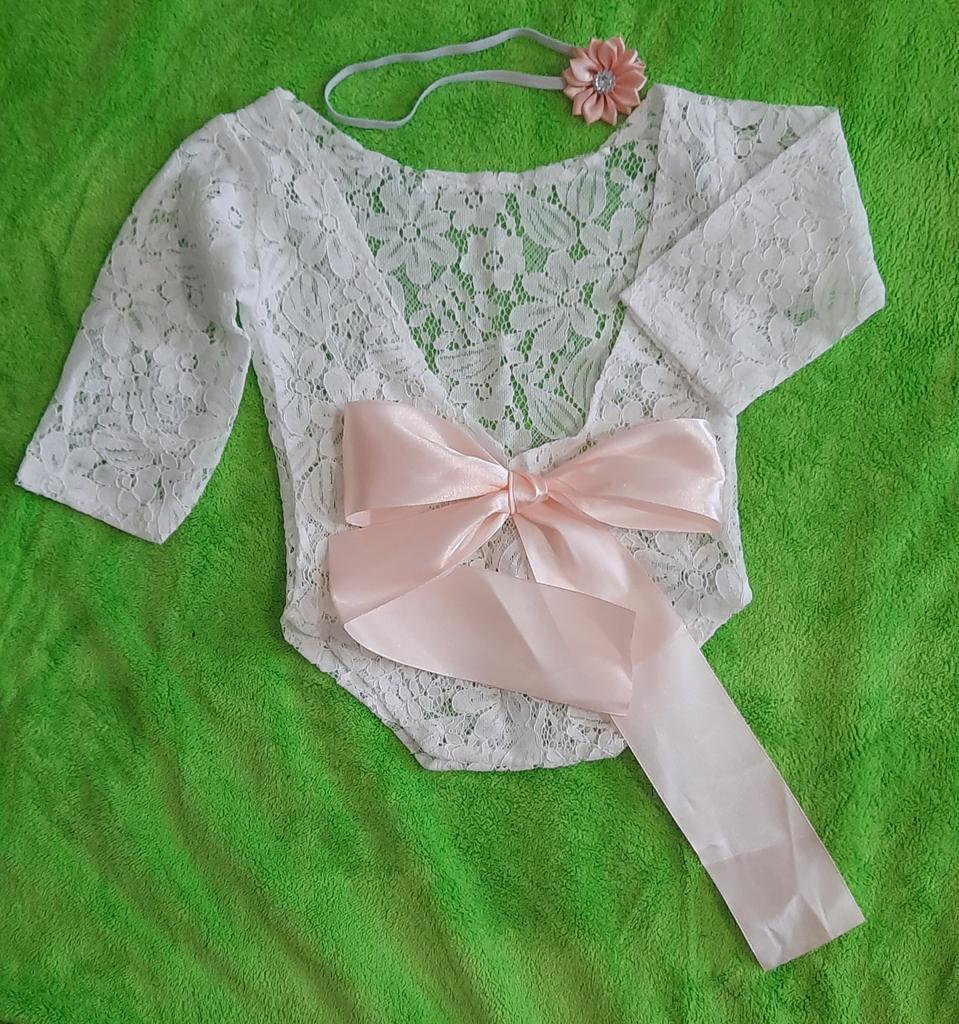 All for BB Newborn Girls Bowknot Soft Lace Romper Flower Headband Photography Props