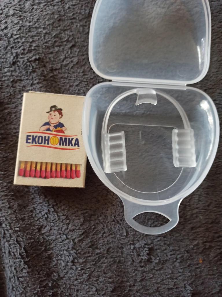 Mouthguard looks good, with a container. Haven't tried yet) I tried it, it is not comfortable and does not hold. I do not recommend 🤪
