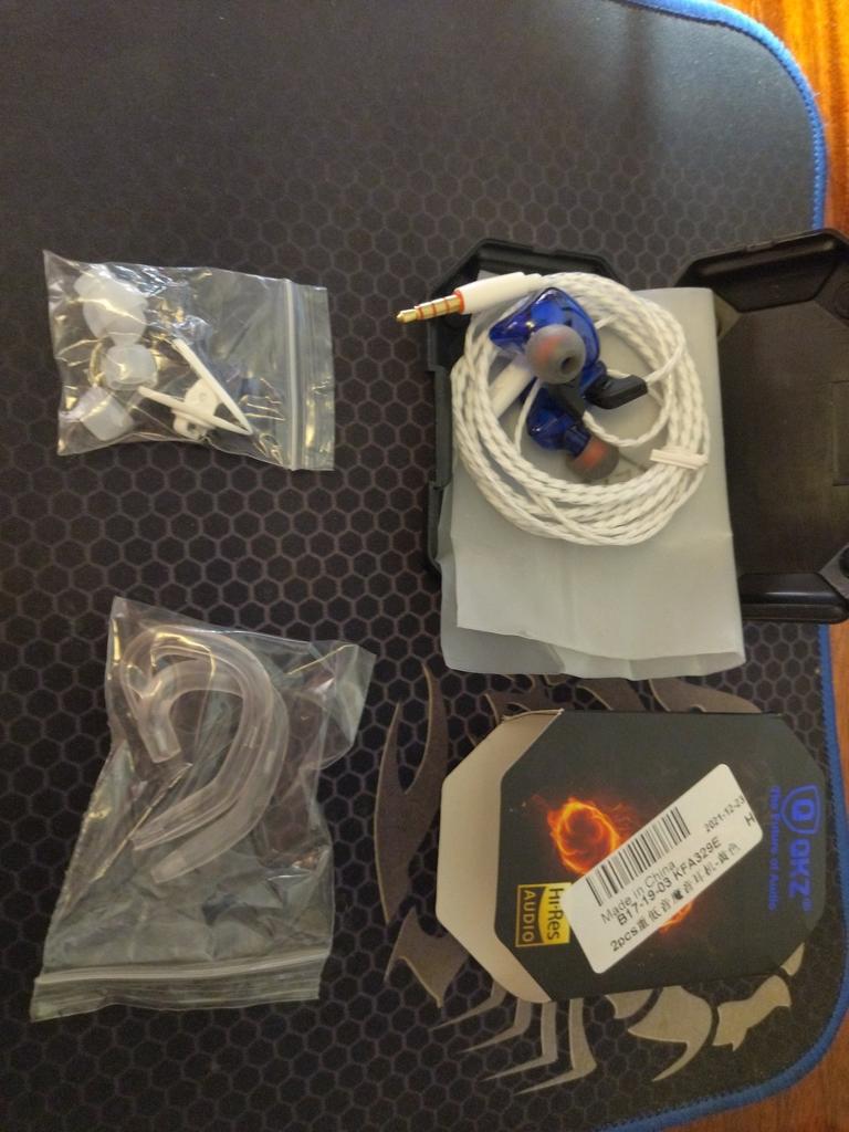 They look good, are comfortable in the ears, the sound is clear, the bass is audible. In a box, with a clip and earrings.