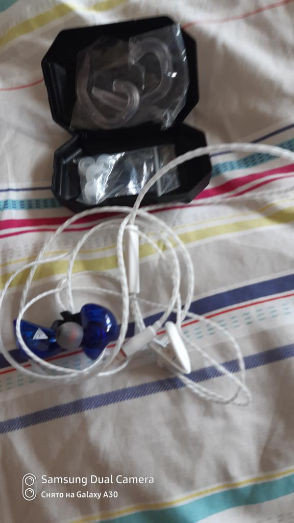 For this price a very good buy. The bass is bright. The wire is rubberized. Comfortable ear mounts. There is a clothespin for clothes. Quite a convenient plastic case. In my opinion, the speaker volume could be higher.