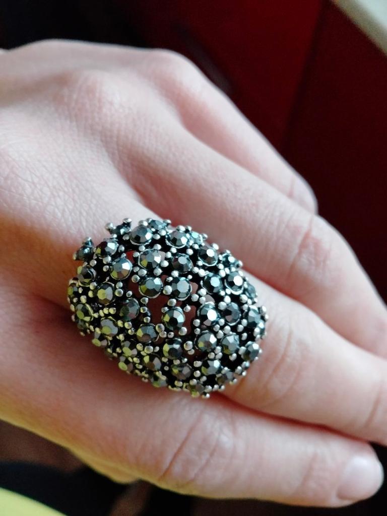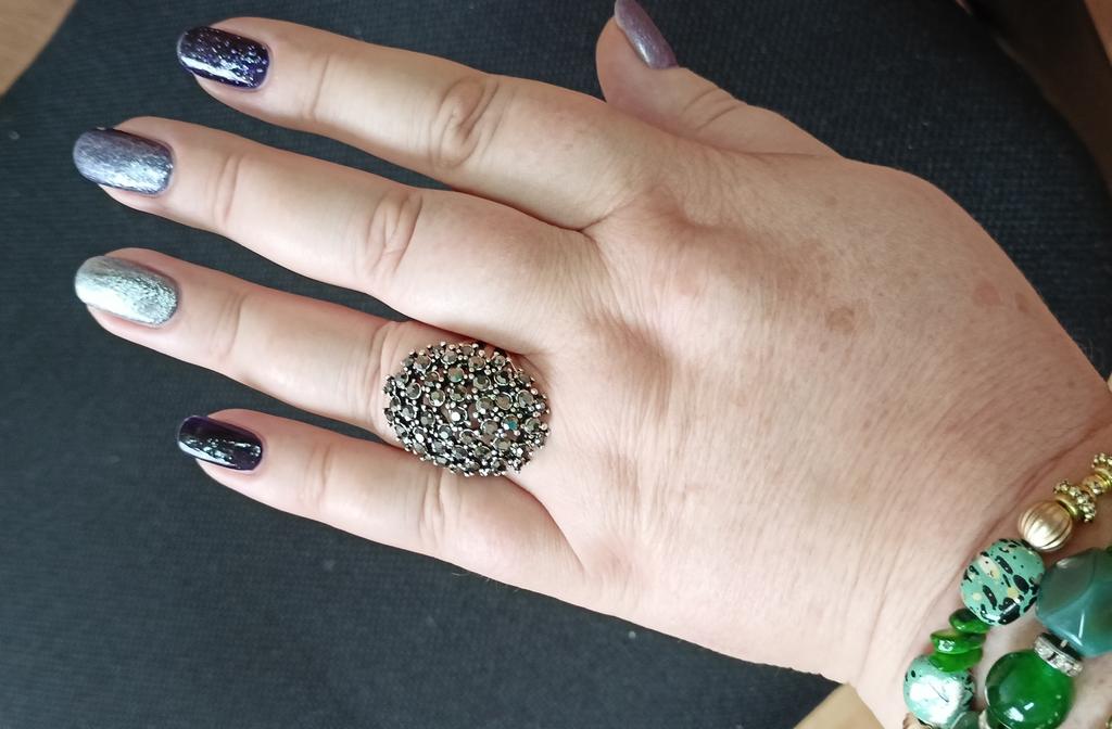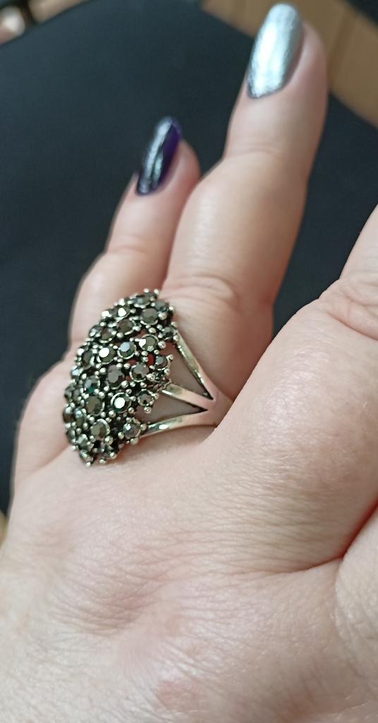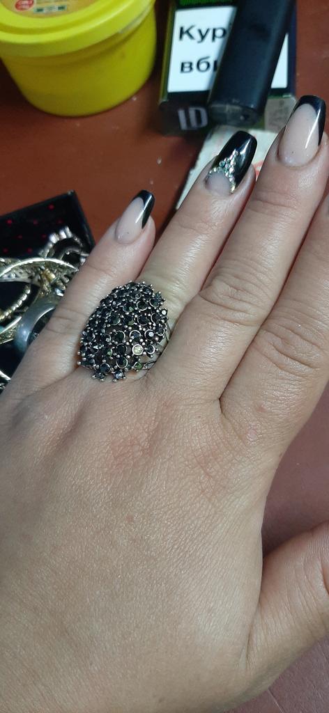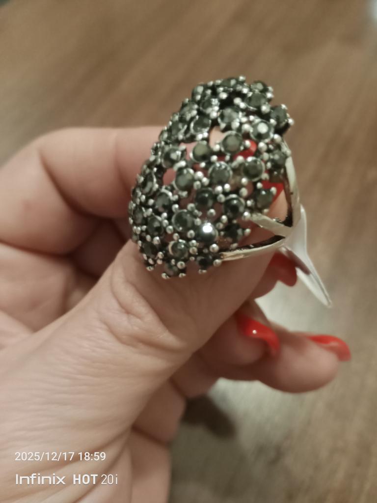 At first I didn’t like the ring - it was gray, but then it became clear - it goes with all the silver on the neck, with any stones! Now I really like it and it helps out. Due to the empty space inside, size 10 even fits size 21.