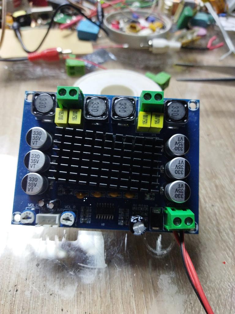 I don't know, I connected everything correctly, the battery is 20 volts, the speaker is 50 watts, it played for 20-30 seconds and stopped. The diode lights up, the speaker clicks and that's it, I don't even know how many stars to put