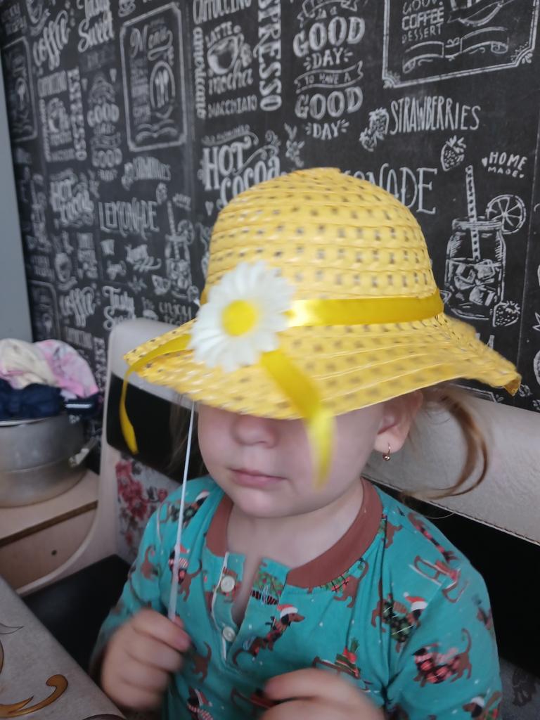 A bright hat that my daughter kept on her head all day