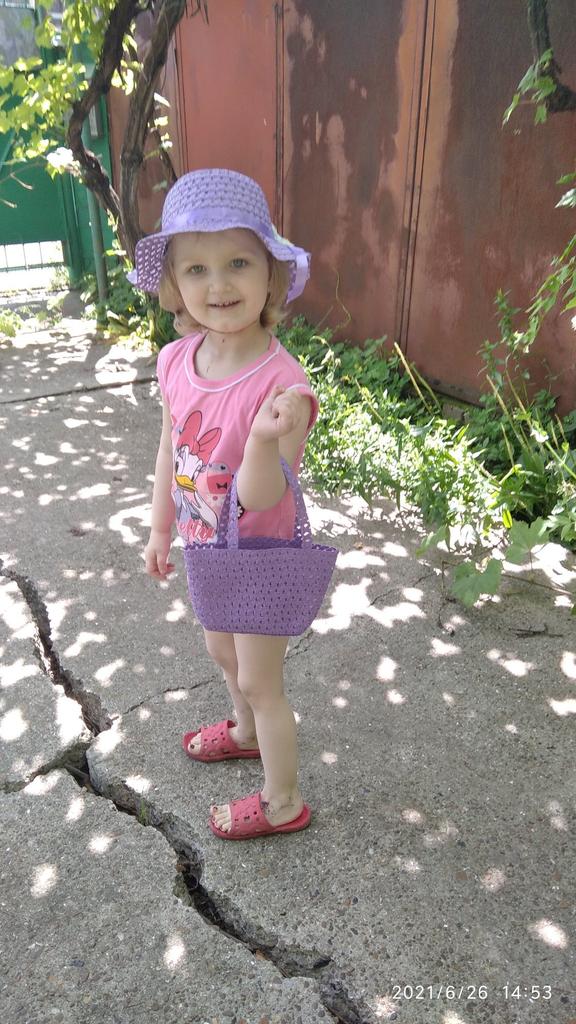 The set is super. The bag is small, but just right for a three-year-old child. A hat with an elastic band will not fall off. My daughter liked it very much. I recommend