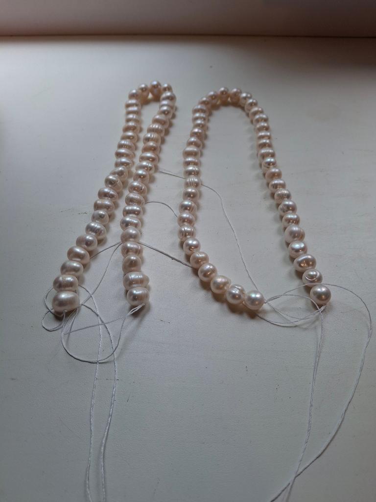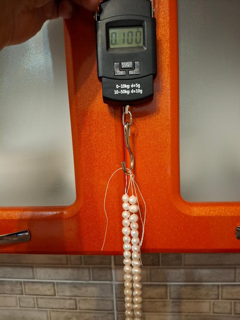 I ordered 3 pieces of white pearls, only 2 strings arrived, how is that? The parcel weight is 98 g, for 3 strings of pearls 10-11 mm it is not enough, but for 2 it is just right, in the photo the weight of 2 strings, the error of the spring balance is about 5 g. I ask the support service to sort this out, I do not need extra, but return mine too! The money was returned for one string, thank you
