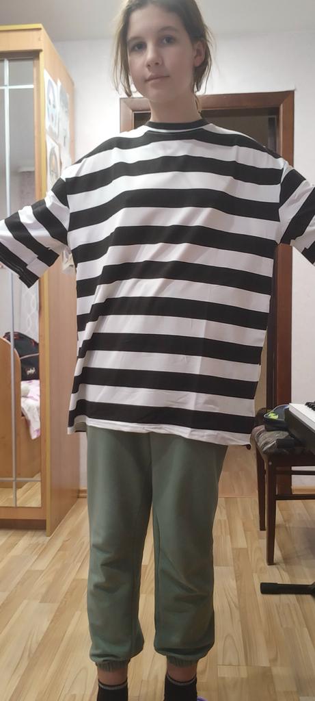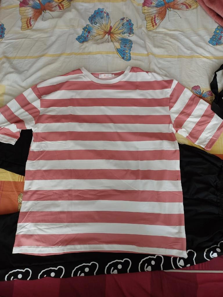 Korean Loose Round Neck Striped Casual Half Sleeve T-shirt Black And White Strip 2XL