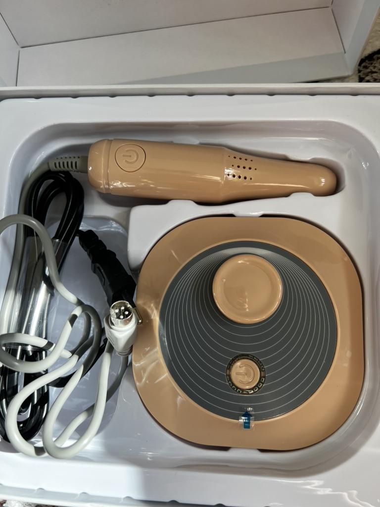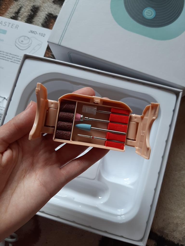 Sanding heads are missing from the box. The quality of the device is very good!