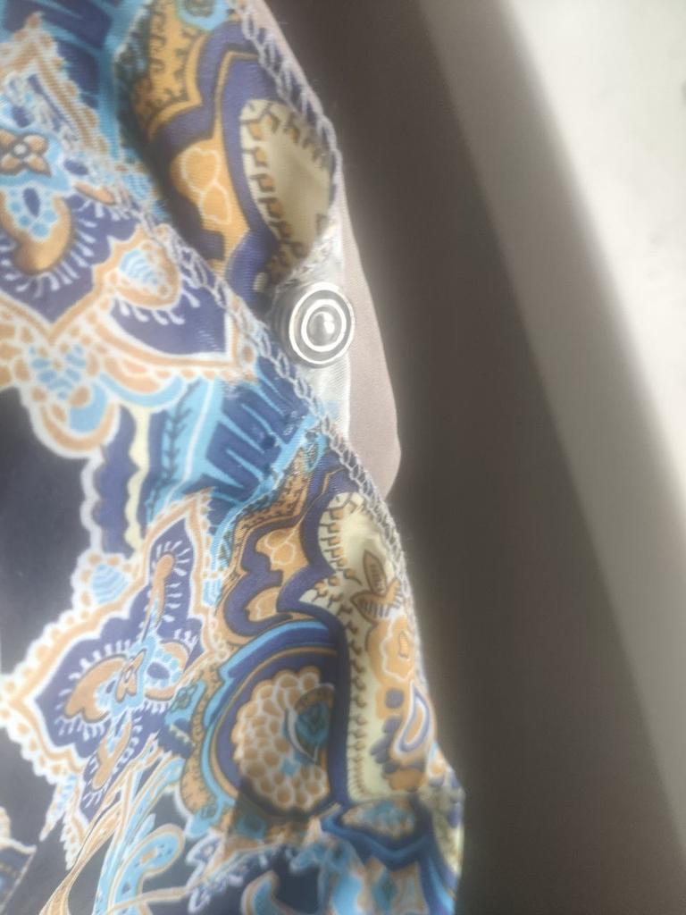 It arrived very dented. I steamed it, ironed it and it became beautiful. Overall good, will wear. The colors are bright, the fabric is 100% synthetic.