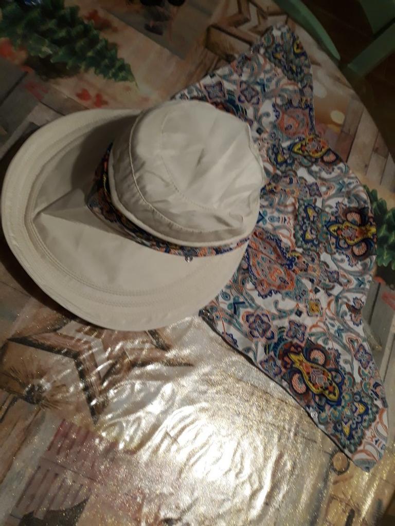 The panama hat is just adorable! The lock works, the back is attached to cover the neck. I am very pleased. The size is adjustable. I recommend for the summer to any dress and in the sun.