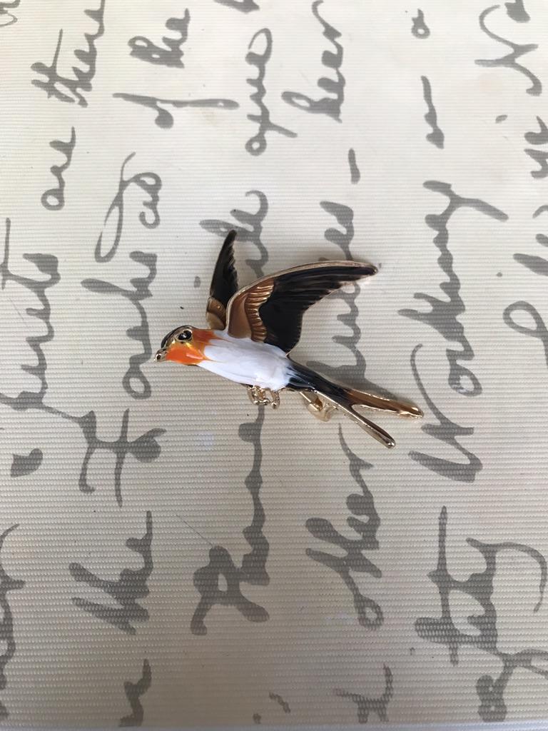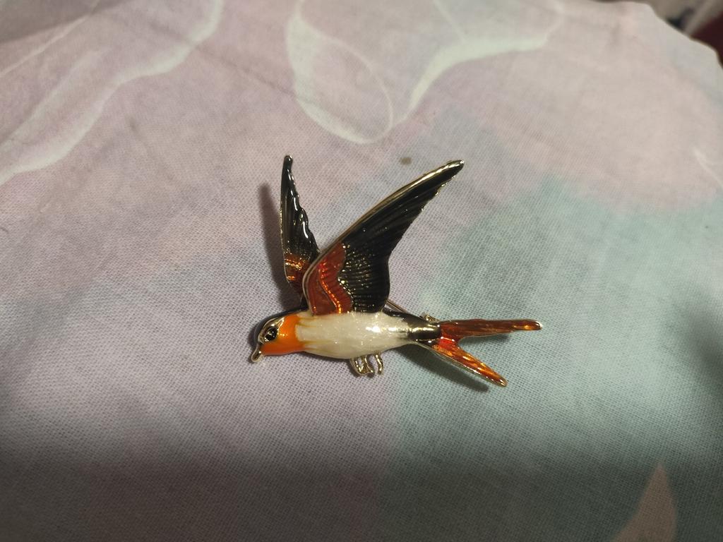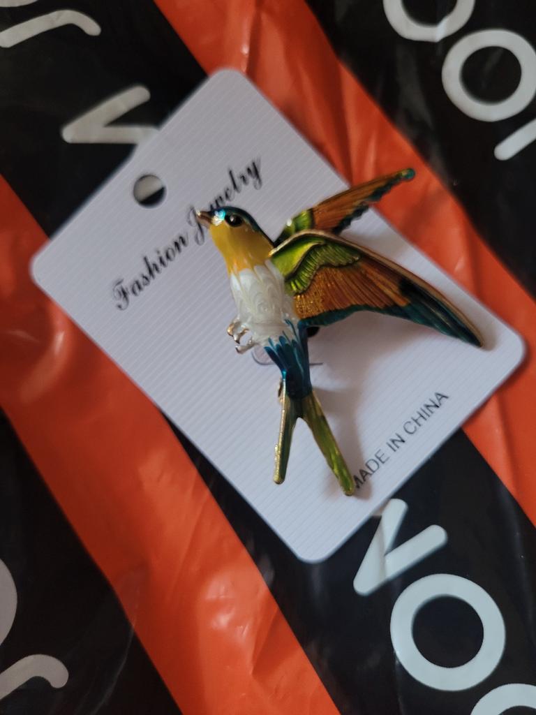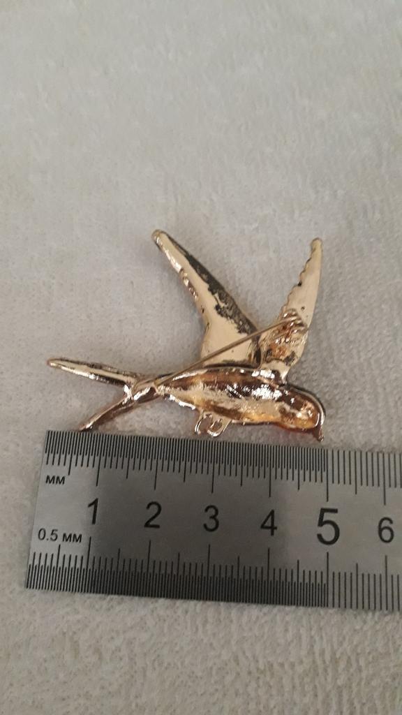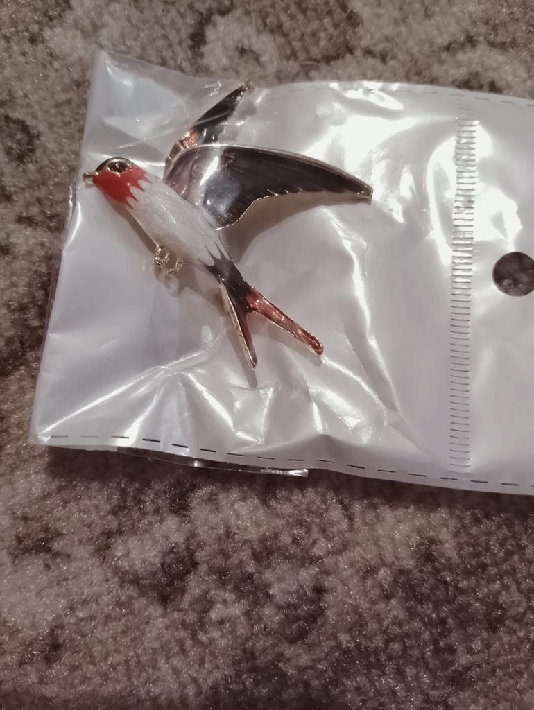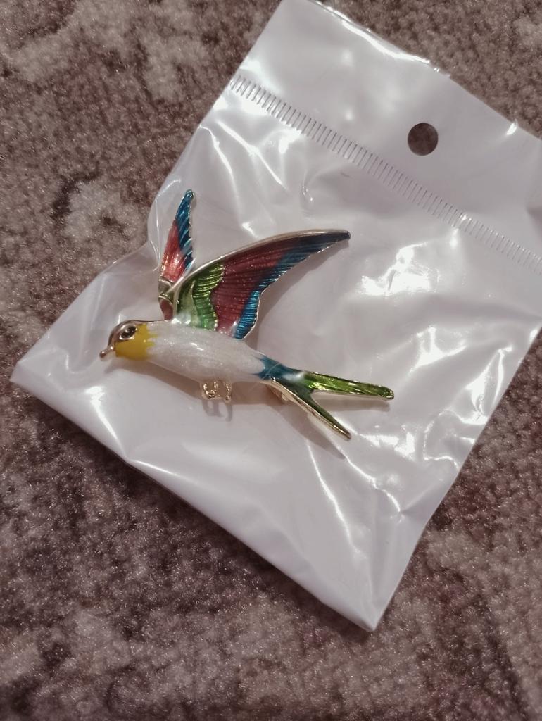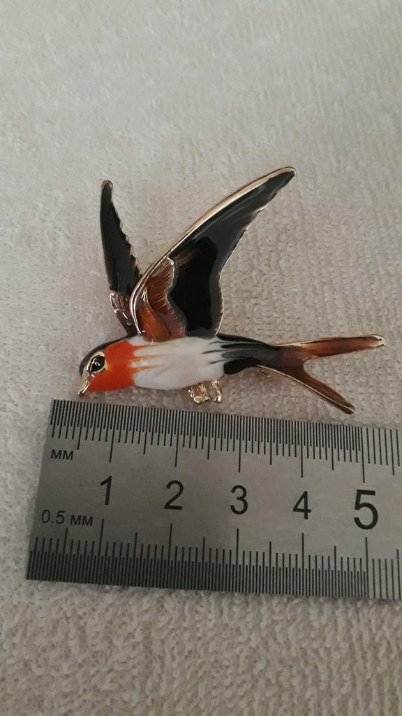 I received the parcel in a month. 🐢 The arrival at the point of issue was announced by sms 📲 Packing for 5 + .👍🌷 In addition to the fact that the envelope was made of air-bubble film, the seller additionally wrapped the jewelry in the same protective film.🌷👍 The brooch in the form of a swallow 🕊 looks very attractive. It will be a good addition to a coat, jacket or blazer.👗. For thinner and more delicate fabrics, the brooch will be heavy The decoration is well made, only in one place there is an uneven application of enamel, but it is visible only on close inspection. When she attached the jewelry to her clothes, the swallow looked perfect I definitely liked the decoration I recommend both the product and the seller. 💯 If the comment was helpful, please 💙