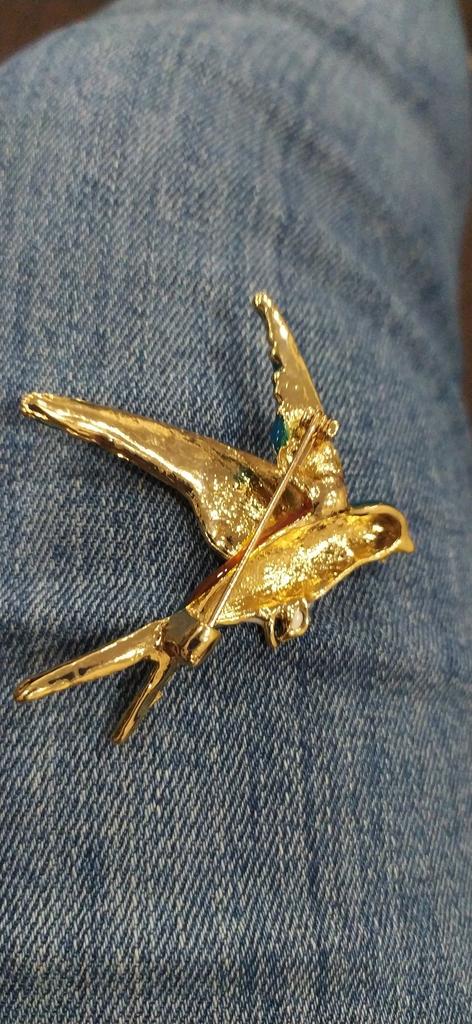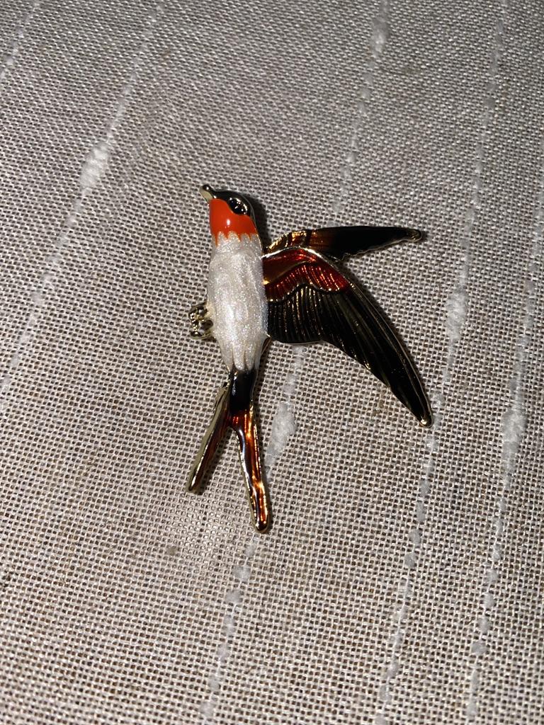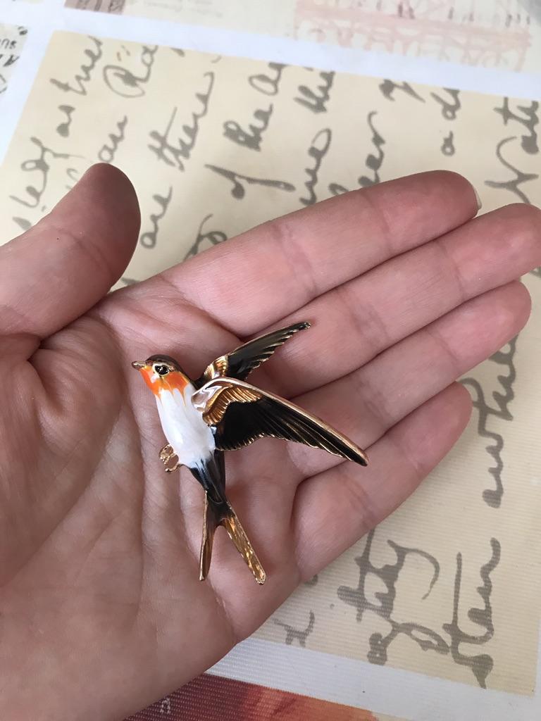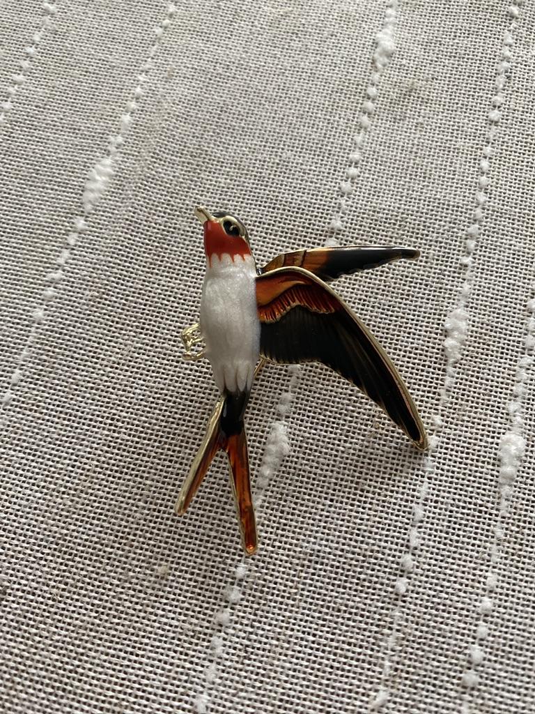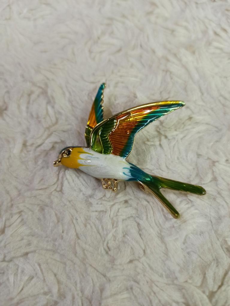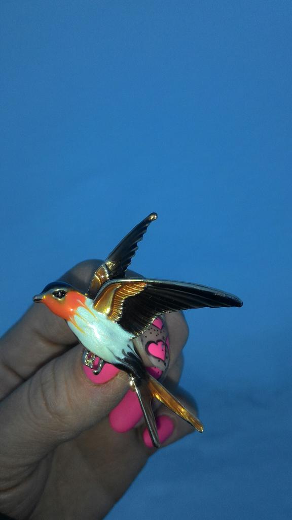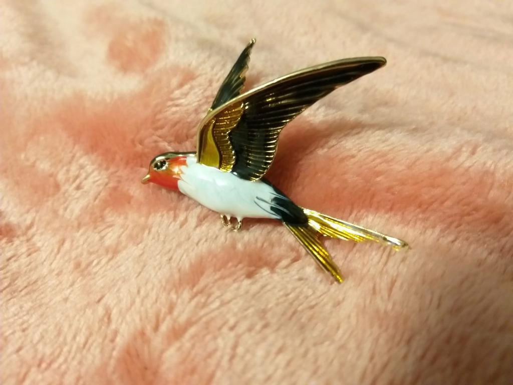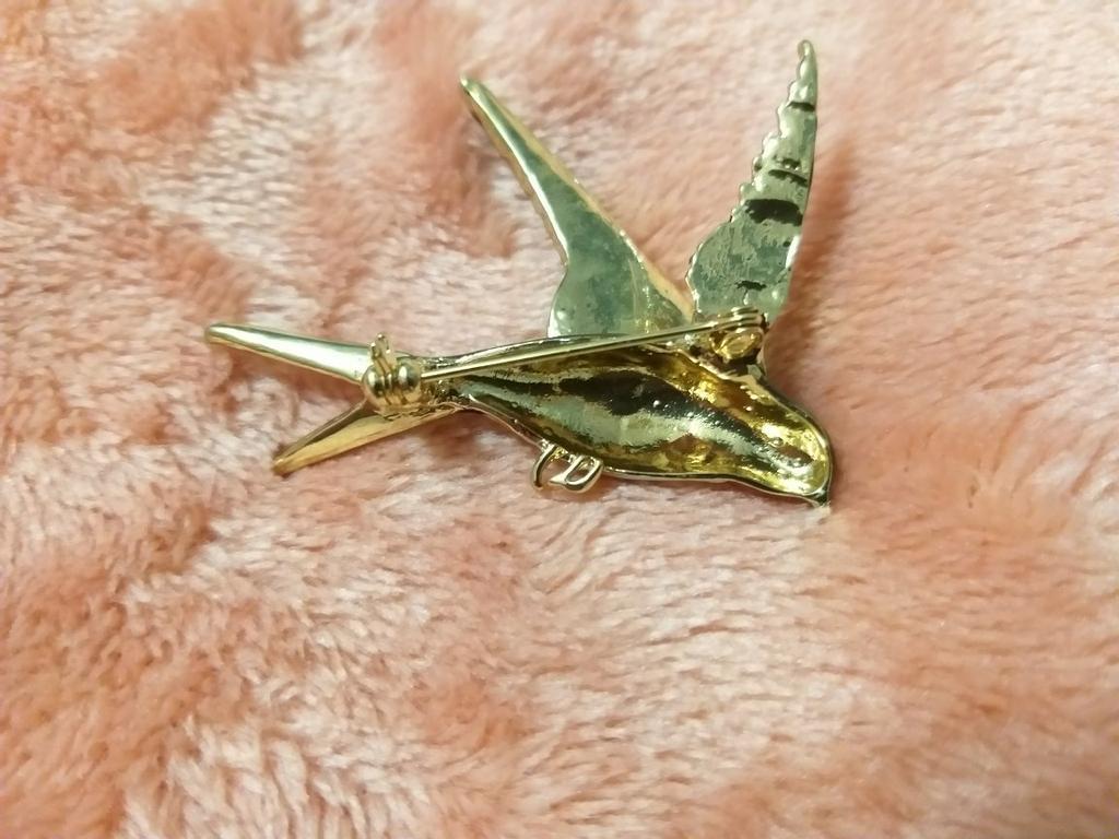 I received the parcel in a month. 🐢 The arrival at the point of issue was announced by sms 📲 Packing for 5 + .👍🌷 In addition to the fact that the envelope was made of air-bubble film, the seller additionally wrapped the jewelry in the same protective film.🌷👍 The brooch in the form of a swallow 🕊 looks very attractive. It will be a good addition to a coat, jacket or blazer.👗. For thinner and more delicate fabrics, the brooch will be heavy The decoration is well made, only in one place there is an uneven application of enamel, but it is visible only on close inspection. When she attached the jewelry to her clothes, the swallow looked perfect I definitely liked the decoration I recommend both the product and the seller. 💯 If the comment was helpful, please 💙