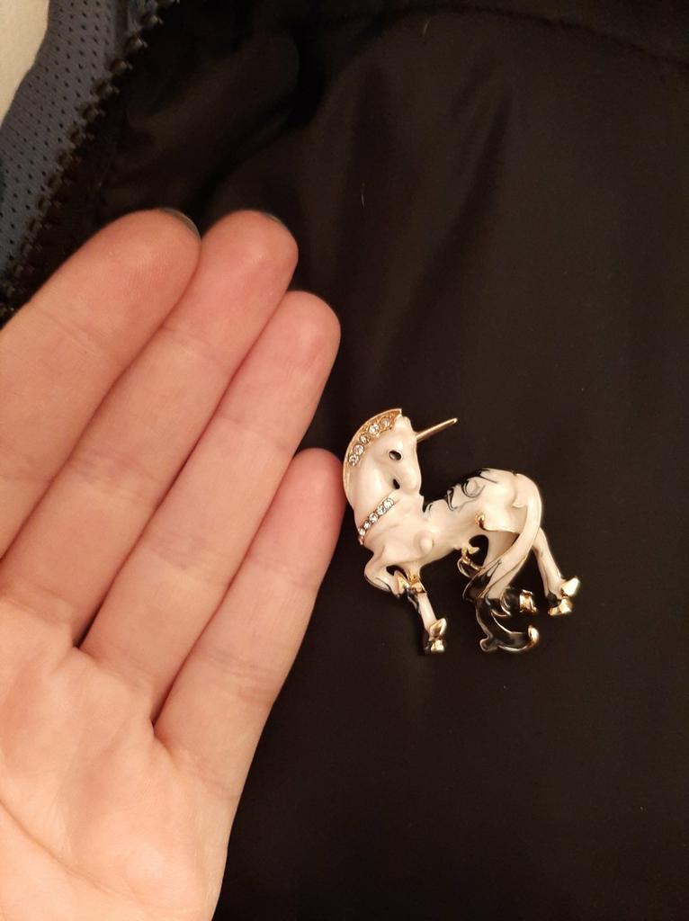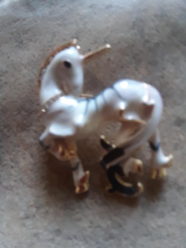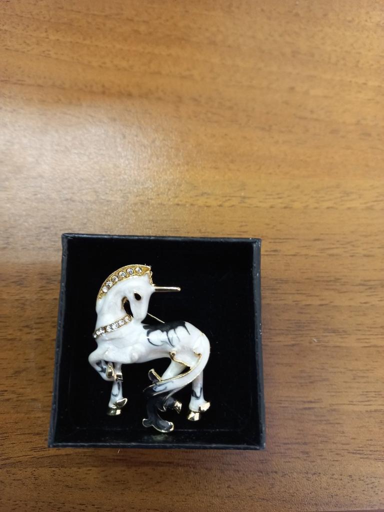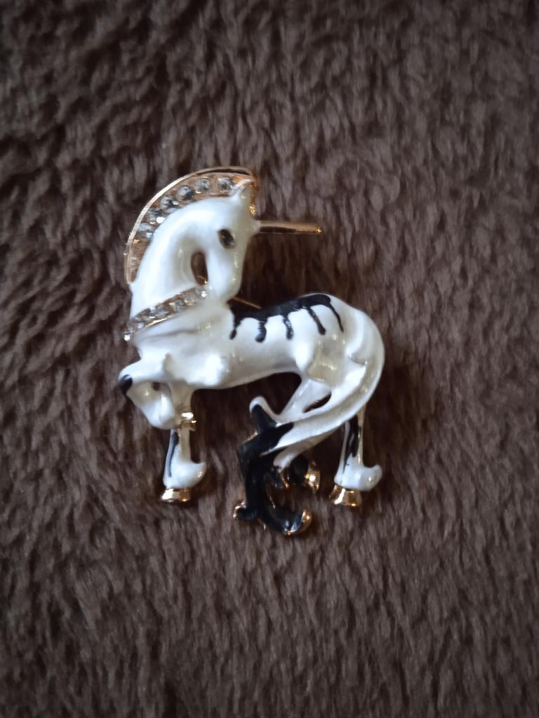 Very nice brooch. Thank you. Fast delivery. Now the Unicorn will always be with me.