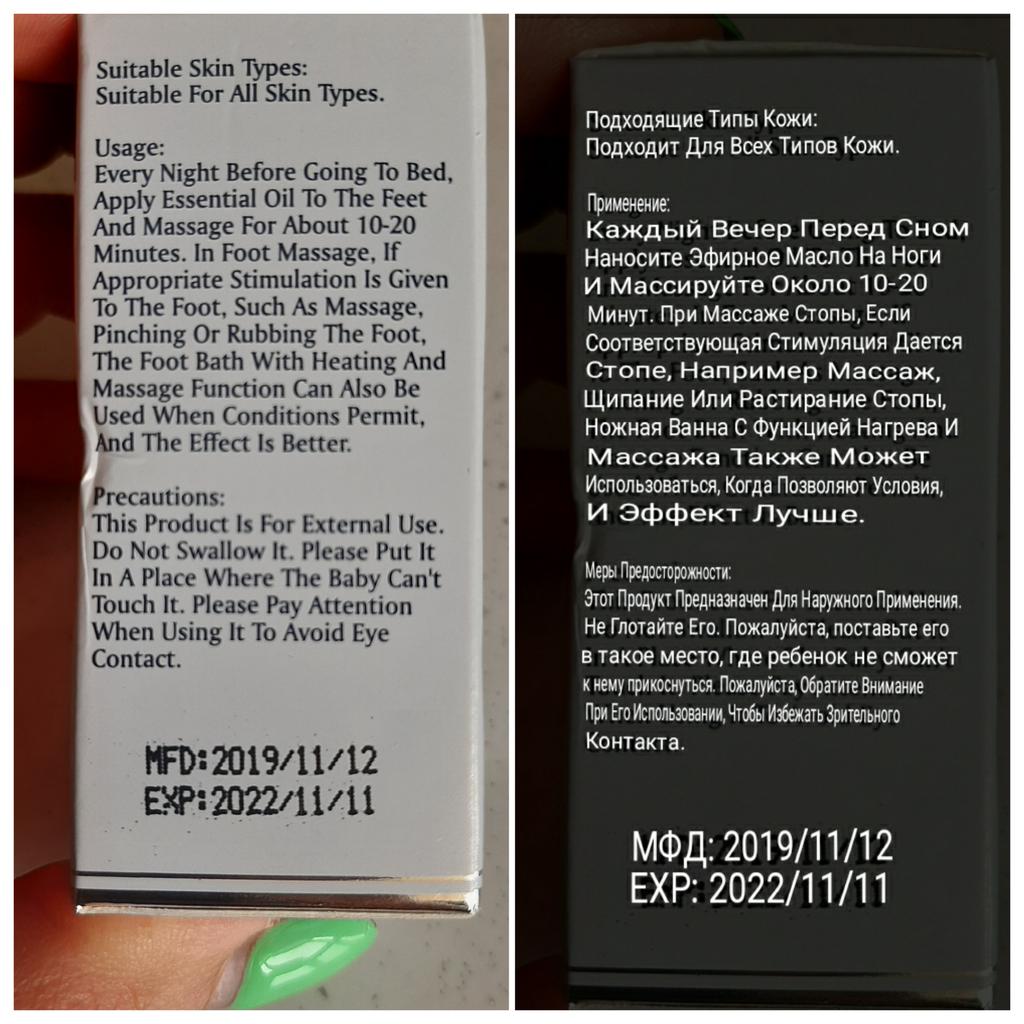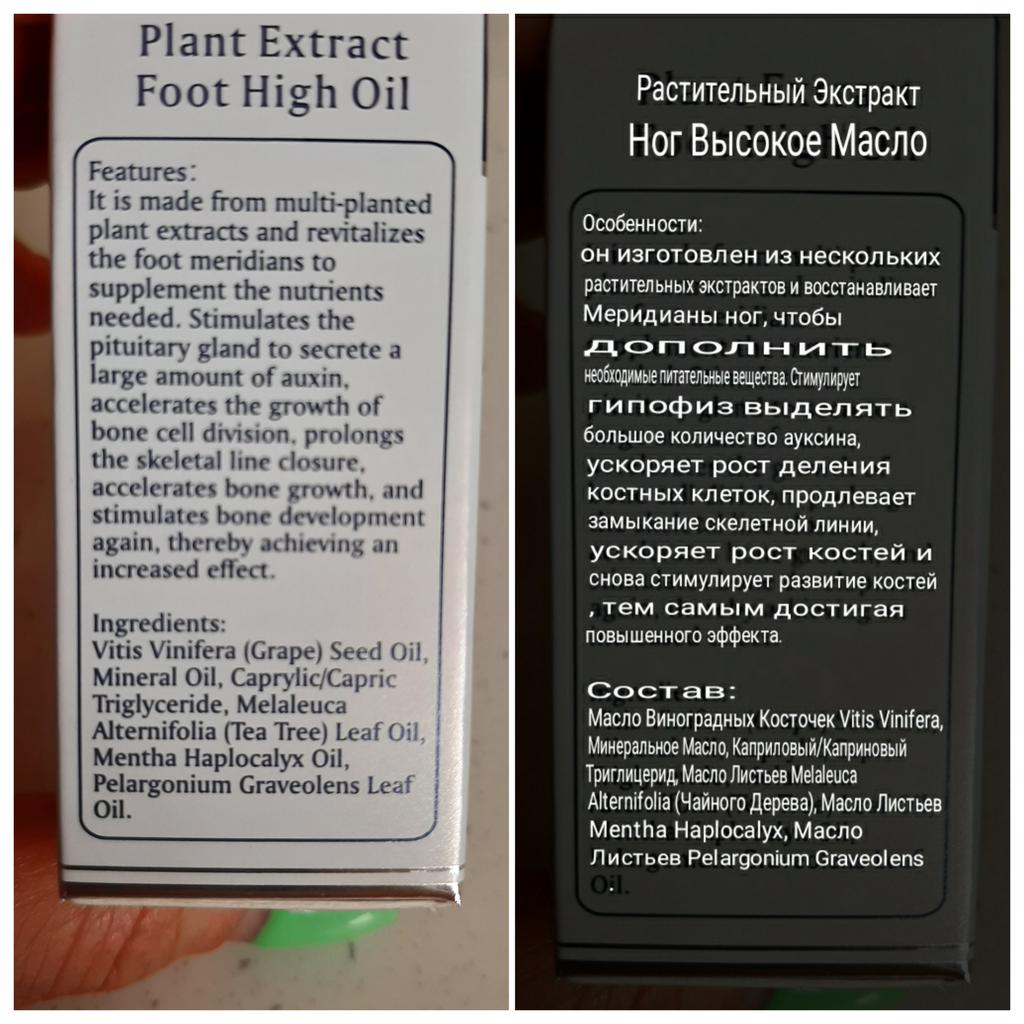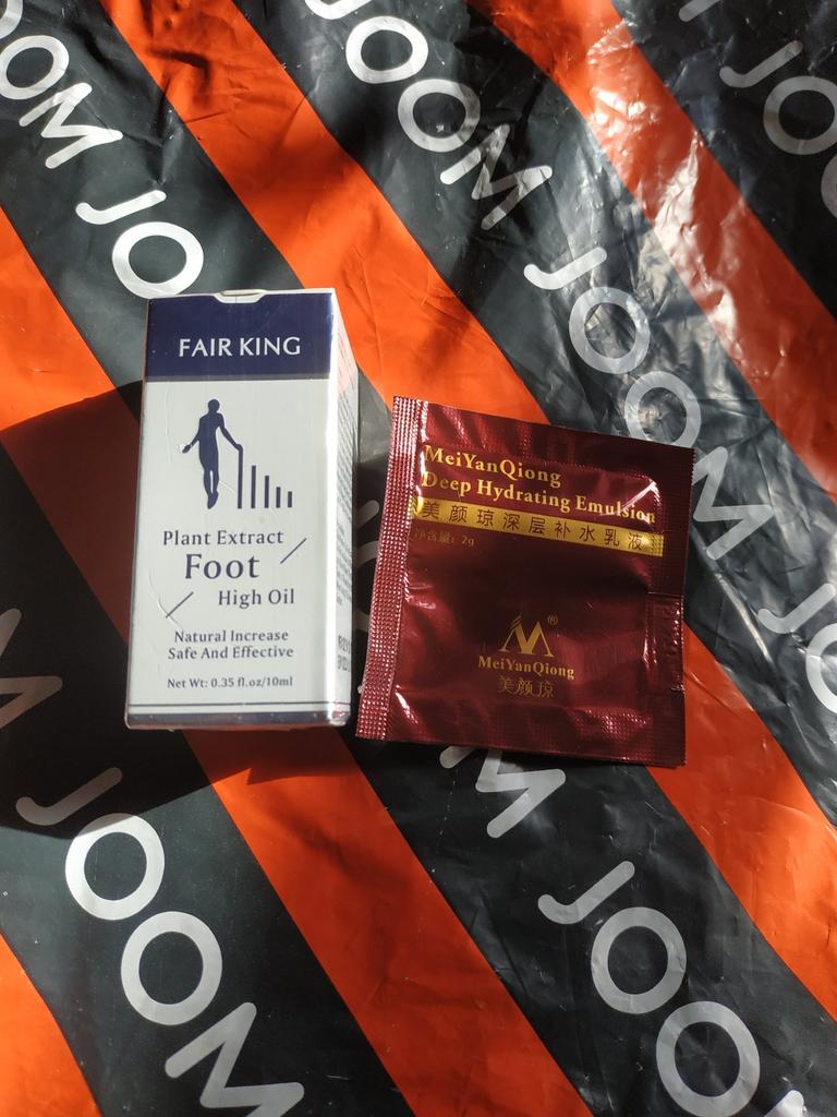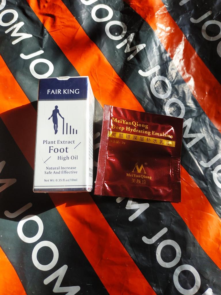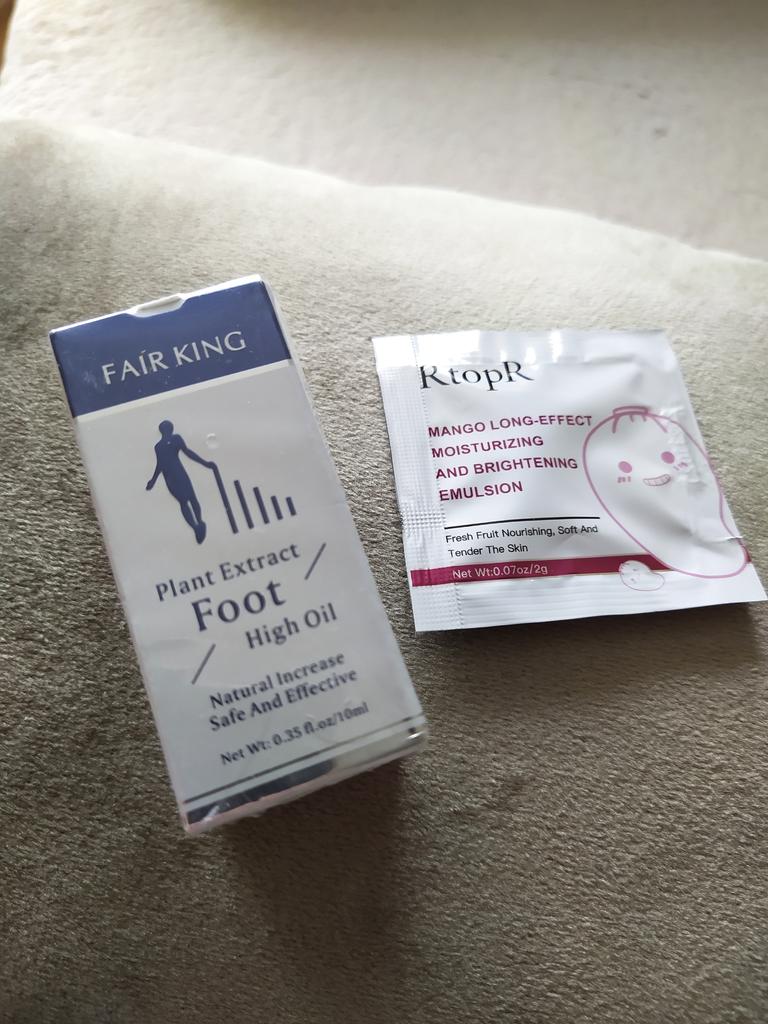 Foot oil 👣👣👣 It absorbs very quickly, the smell is not necessarily pleasant The feet are moisturized and the skin soft The parcel was delivered to me in less than a month The packaging is complete without any damage