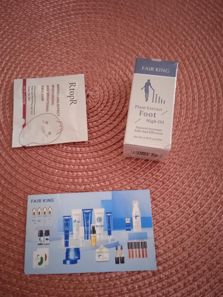 Many women suffer from foot problems due to swelling and tingling due to shoes or long hours on their feet. Something that I have also suffered so I decided to try this product. These problems can be very painful and cause blood circulation problems.. Through a massage with vegetable oil you can improve this situation and heal your feet. I ordered this essential oil from FAIR KING to take care of my feet. You should apply it to clean feet in circular motions with light finger pressure. The oil is soft, delicate and has a mild smell. It absorbs quickly and your feet feel softer and healthier. After a month of use I will talk about the results again but the first impression is very positive. Great quality and a perfect price. I definitely recommend it 100% 🛍️ the seller added some samples of mango cream as a gift 💖 It took very little time to arrive in Spain and the seller packed the order very well so that the product was not damaged.
