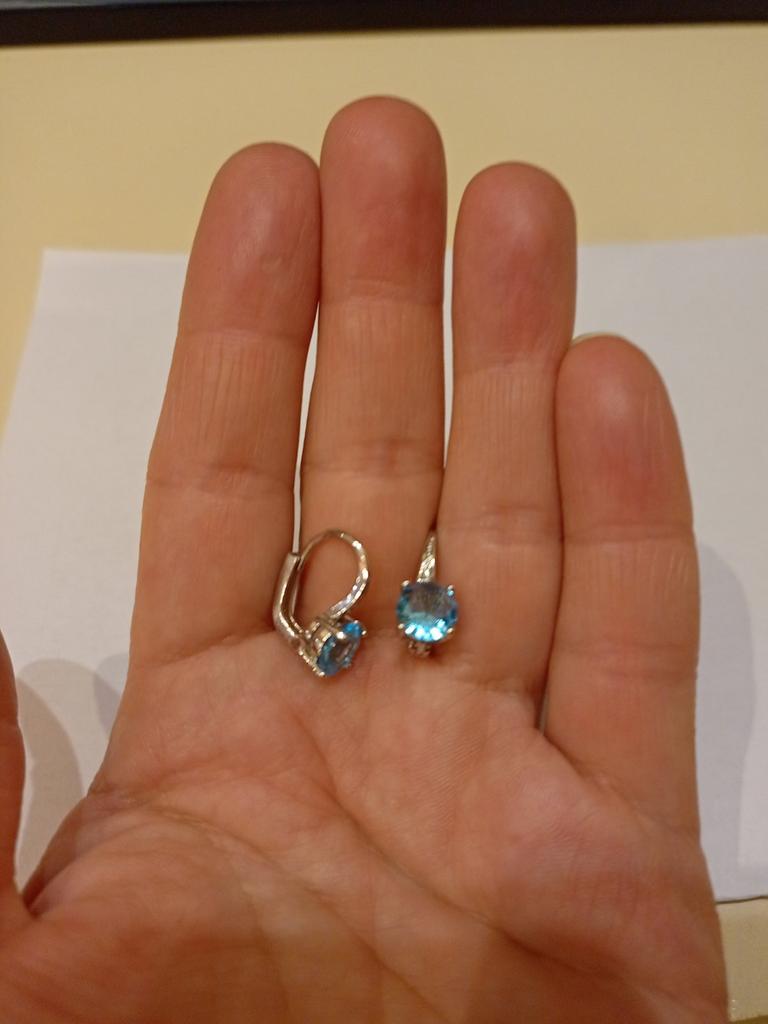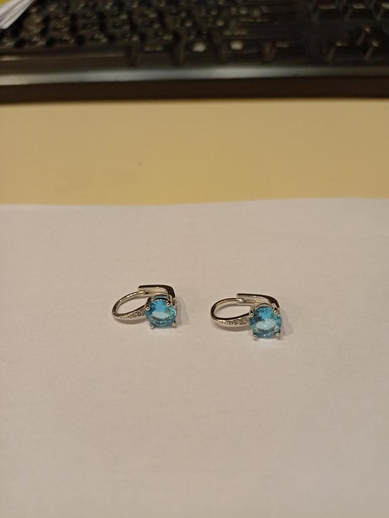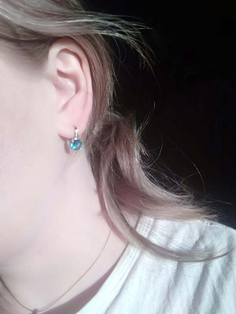 7mm Round Cut Four-claw Blue Crystal Gemstone Hook Earrings Birthstone CZ Dangle Sapphire Earrings