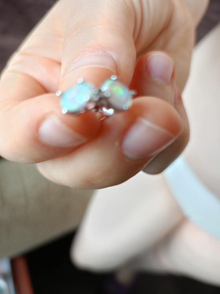 Beautiful, tiny earrings. I chose a green opal to match the pendant, but I will definitely order the white one as well. I recommend it.