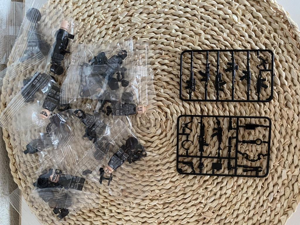 💂Lego special forces soldiers with weapons⚔️. ✔️Cool soldiers, each of them can attach weapons to their hands. All weapons are varied, there are also handcuffs, grenades, knives and tools. ✔️Each of them is unique in its own way, there are no repetitions. Everyone has a belt with cartridges and body armor with uniforms. ✔️ Soldiers come disassembled. It will not be difficult to assemble them, everything is simple and clear without instructions.. ✔️There are no unpleasant odors, all parts are intact👍 ✔️ Super quality 🔥 The child appreciated and plays with pleasure 👍 ✔️Arrived on time, well packaged, each one in an individual bag👍 Tracked 🧐 ⭐⭐⭐⭐⭐ Happy shopping everyone 🛍️