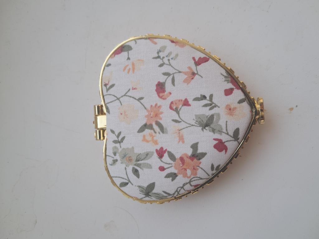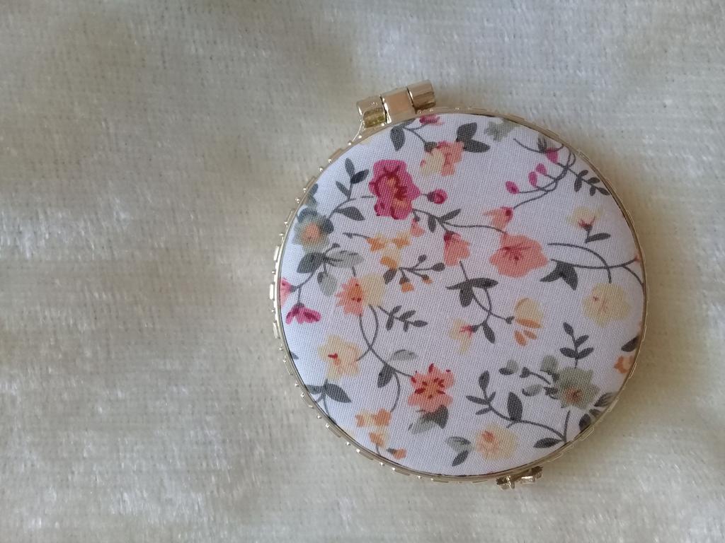 Cute mirror, I will use it with pleasure. The covering is fabric.. this is beautiful and unusual.