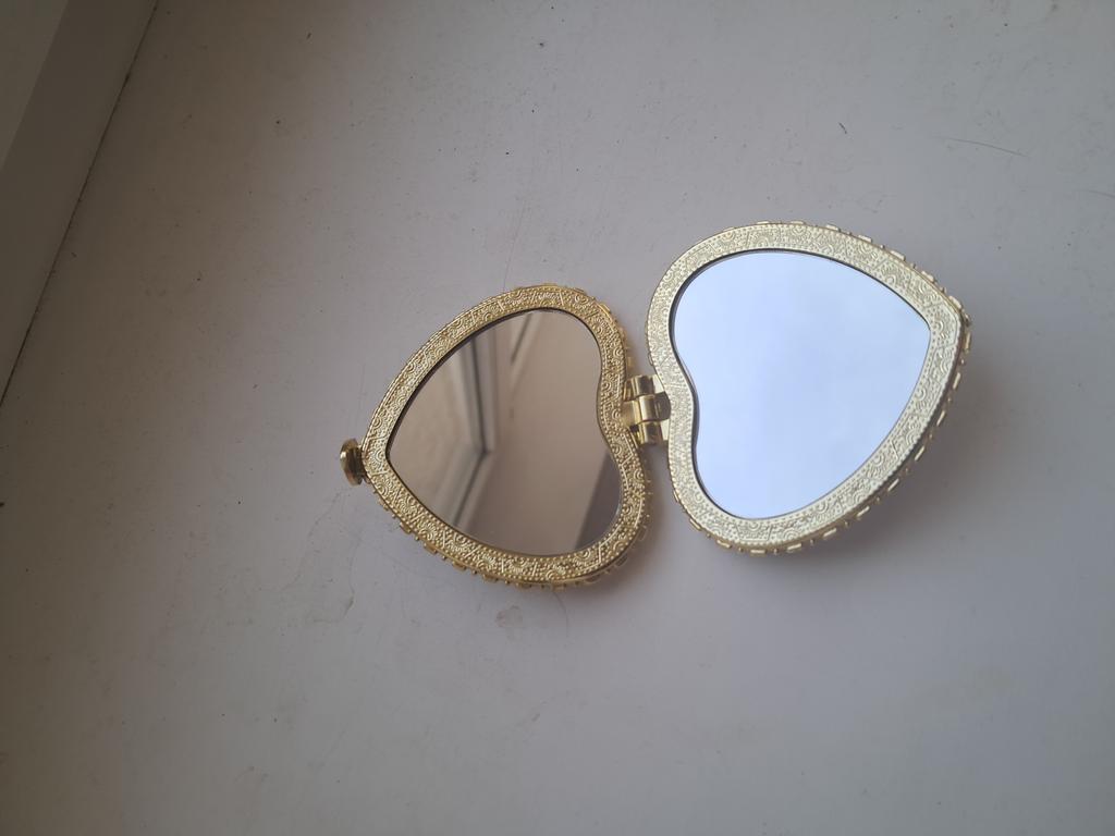 The mirror is small and convenient, but there is a minus: the glass of the mirror is cloudy, but everything is fine.