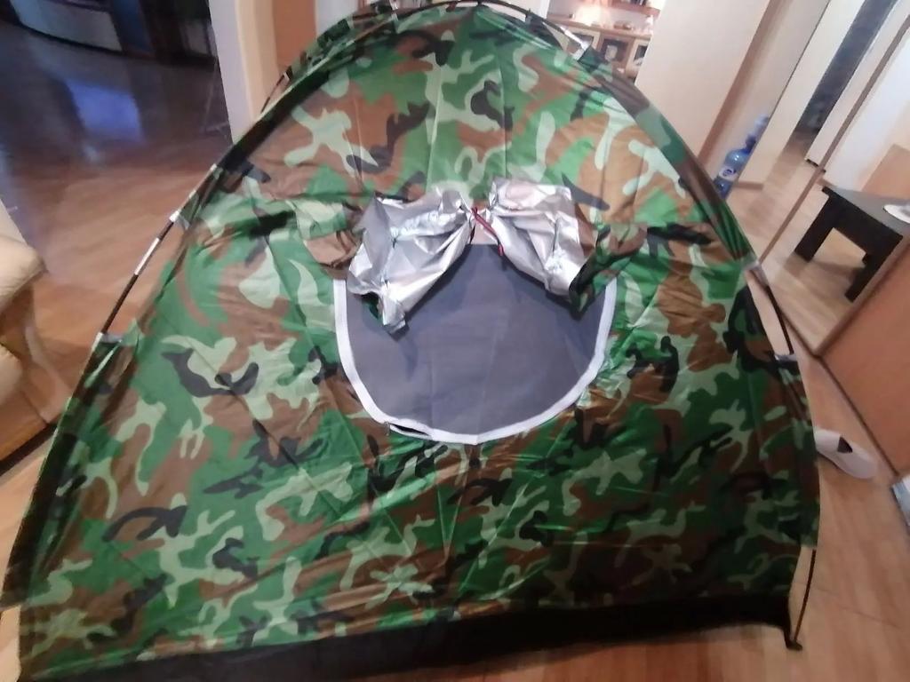 CHINA-WASTE / Very bad quality Purchase price at purchase = 15 ⬠!!! The tent is NOT 2 meters wide. When I (173cm) lie in it, my feet and head hit the tent wall. The tent is only suitable for children (max. 150cm) The floor is NOT waterproof: With normally moist soil, the moisture penetrates through the tent floor. The color of the tent floor is shiny silver! It looks gray in the sales photos - but unfortunately it is silvery in reality. Processing of the seams: Cheap bad China garbage. Anyone who rates this tent as good is either blind or getting paid for it. PLEASE DO NOT BUY!