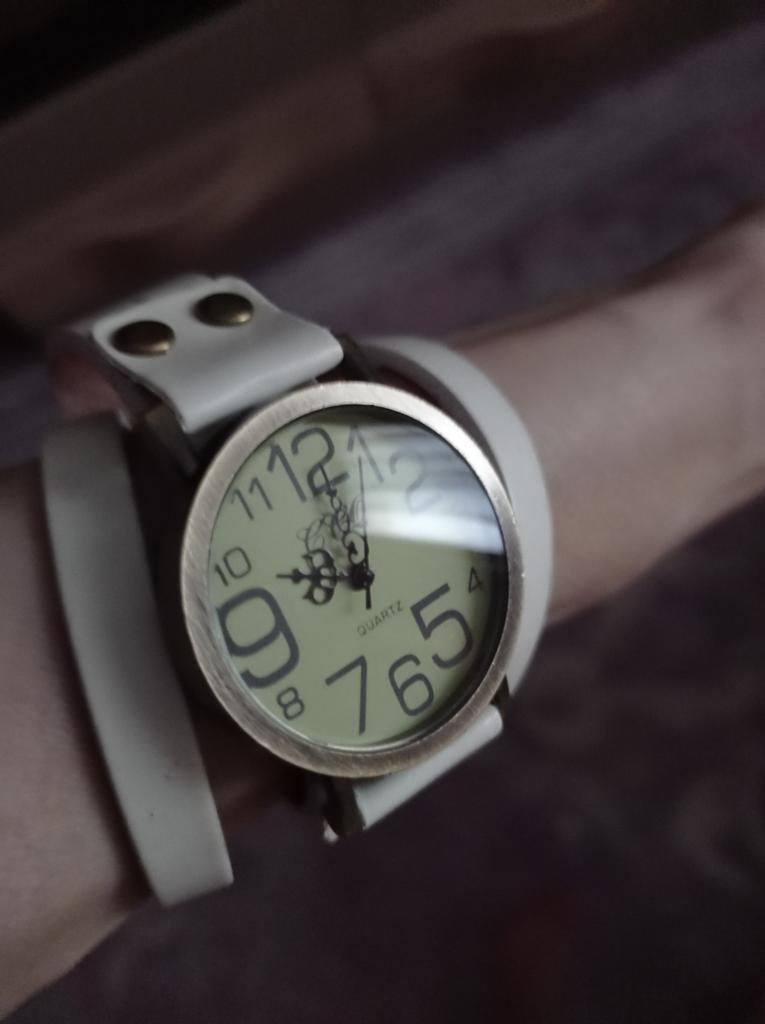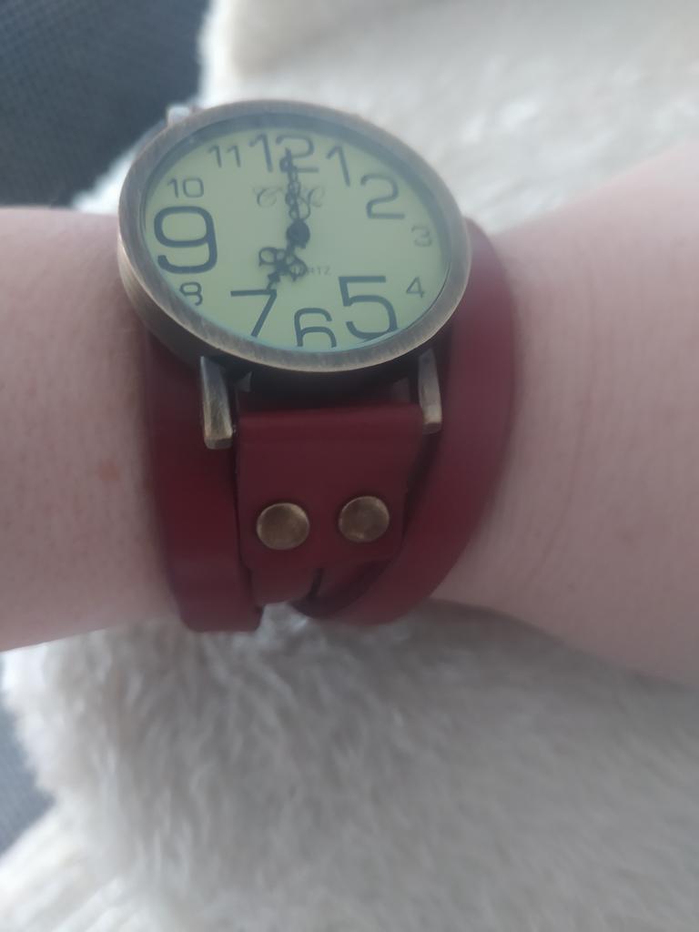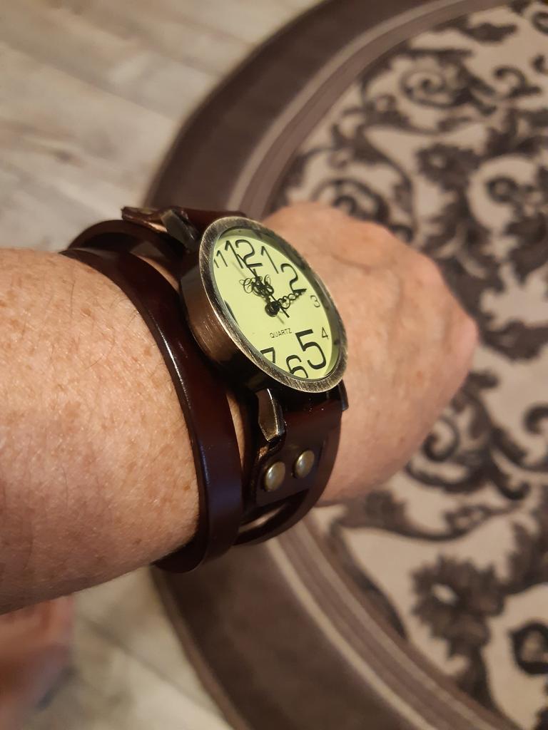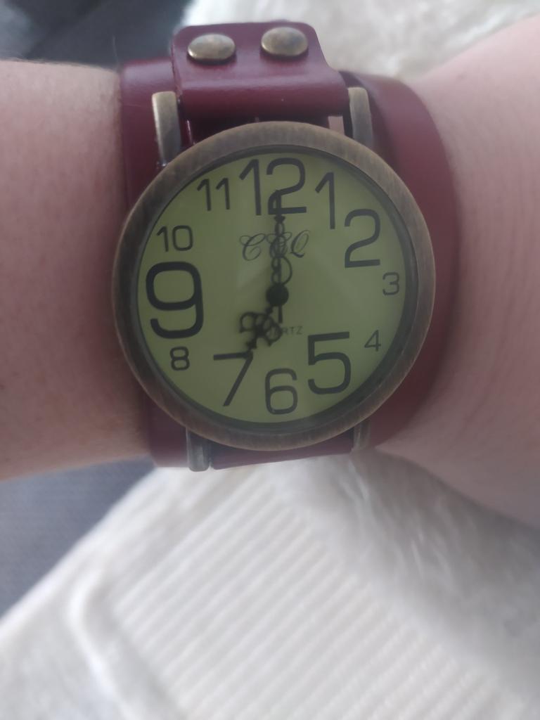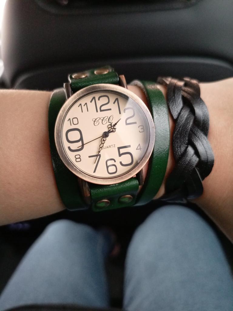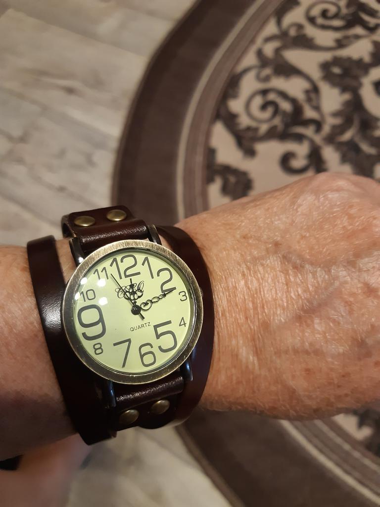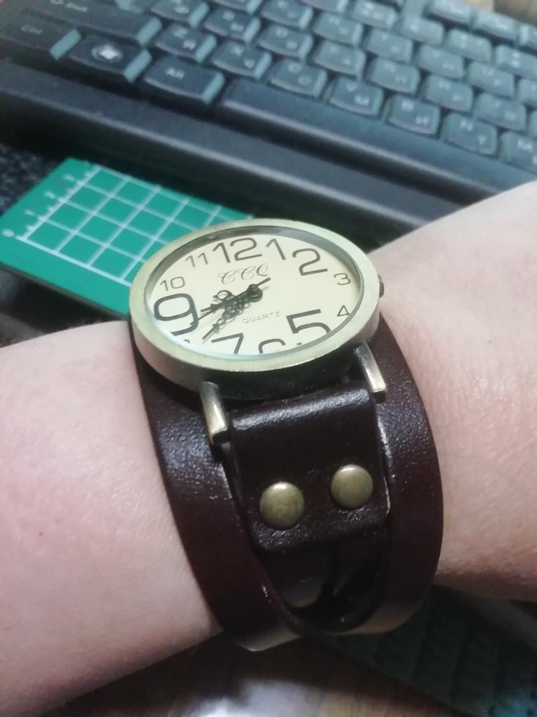 Nice watch, large numbers. The bracelet is a little uncomfortable: hard and spins around the hand. The watch is always at the bottom, at hand.