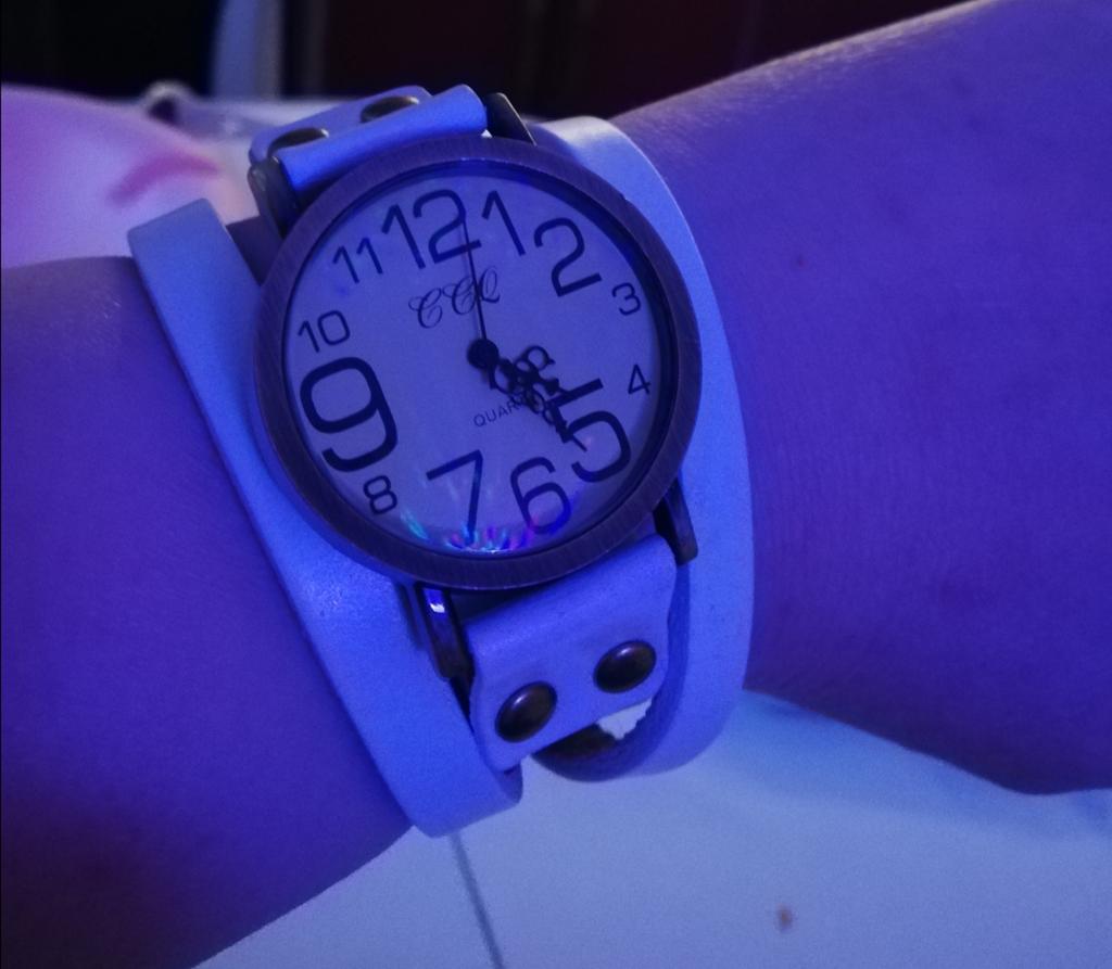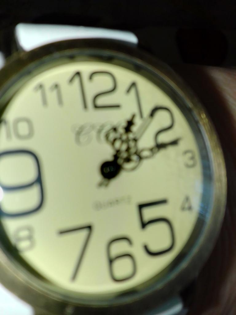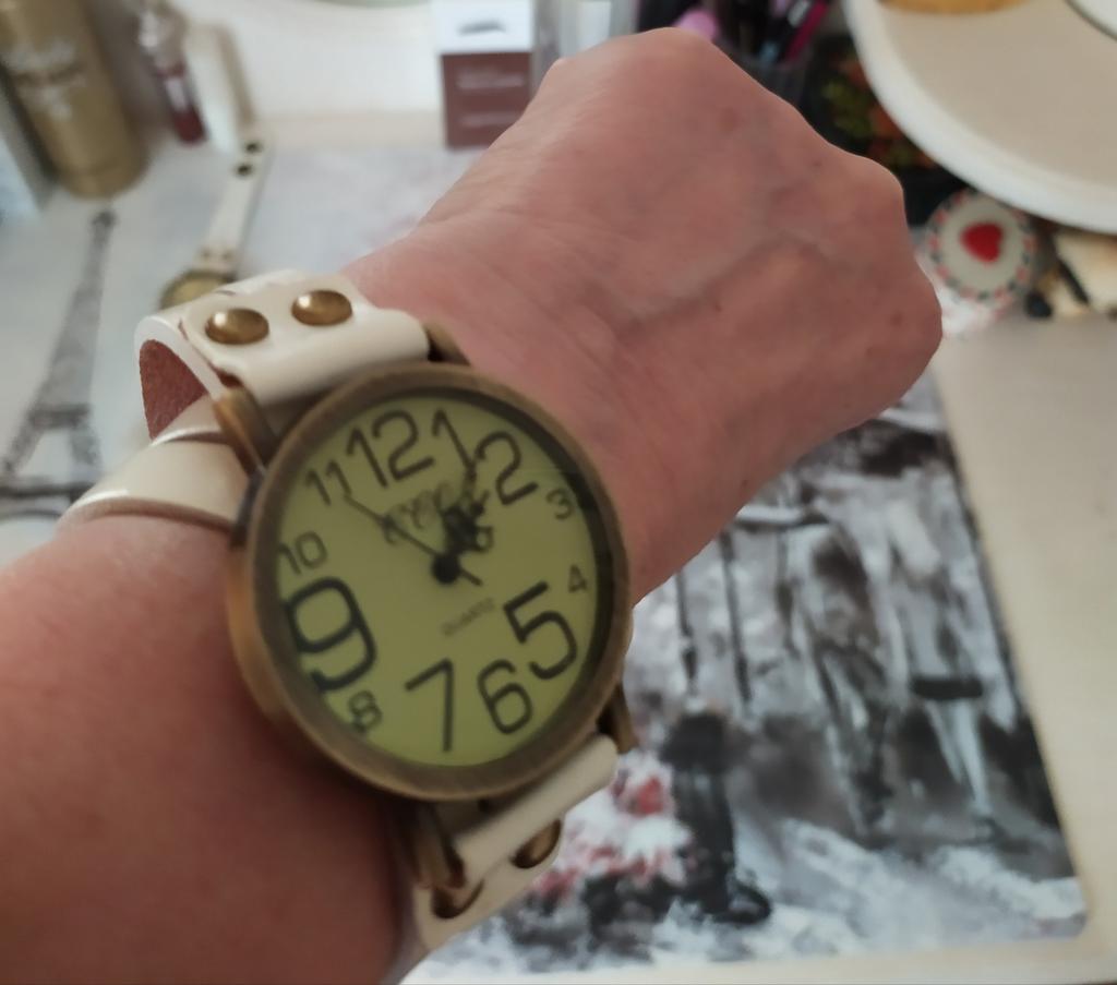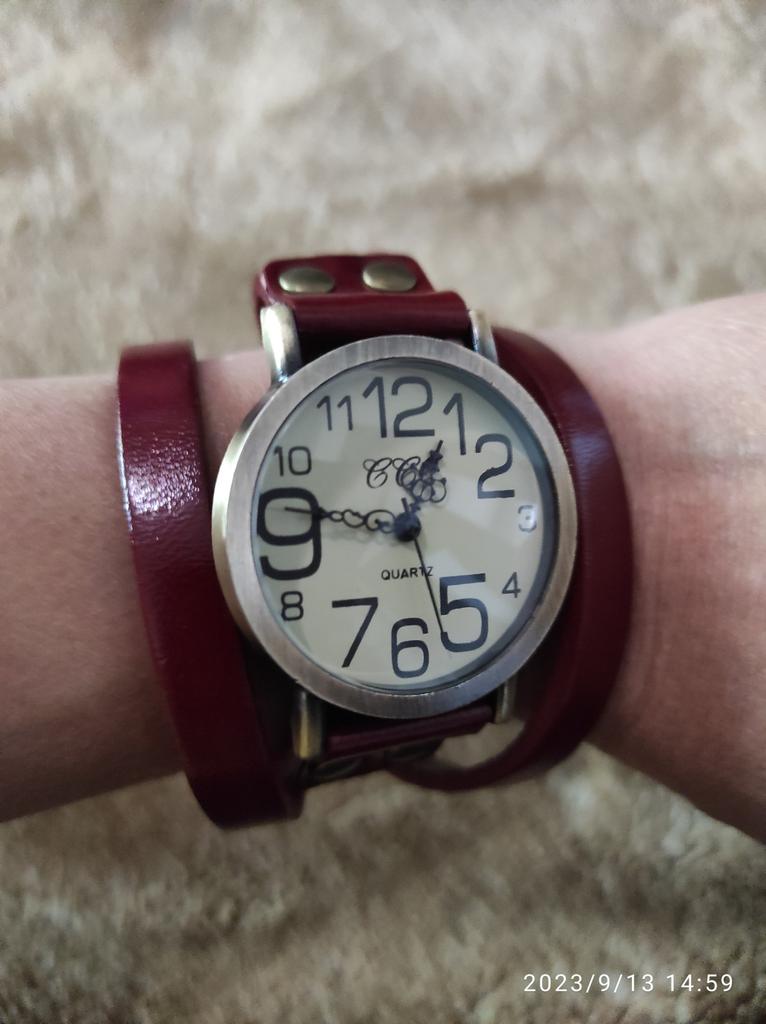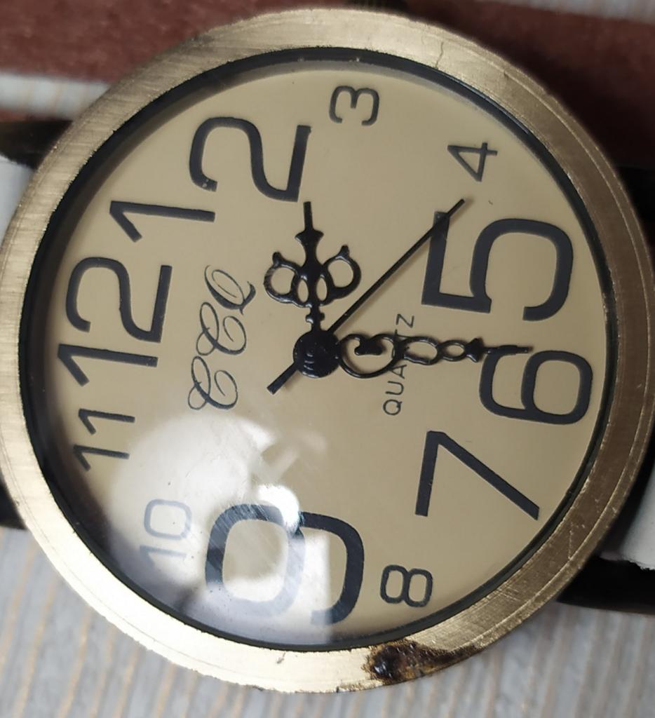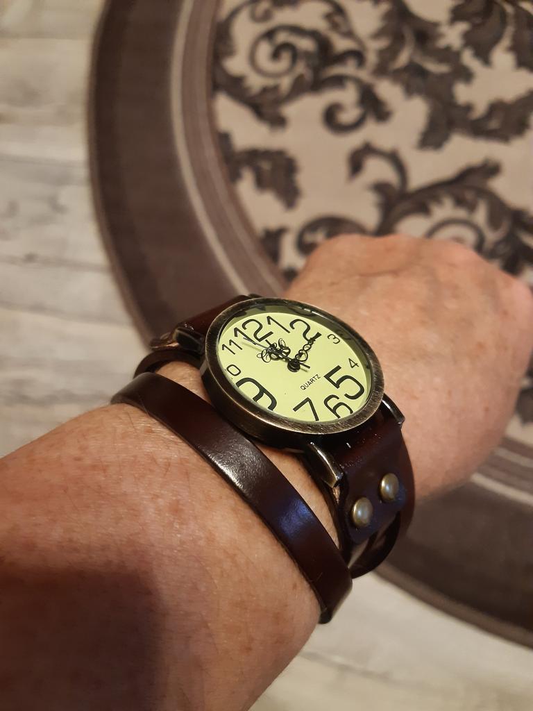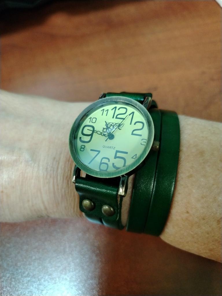 Nice watch, large numbers. The bracelet is a little uncomfortable: hard and spins around the hand. The watch is always at the bottom, at hand.