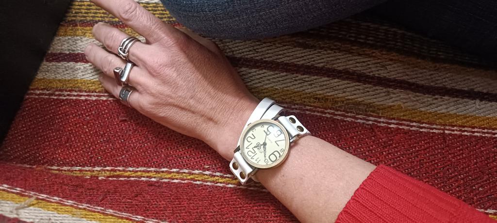 The watch is chic and fashionable. The bracelet is a little stiff, but will stretch a little when worn. I wear it with pleasure. Thank you.
