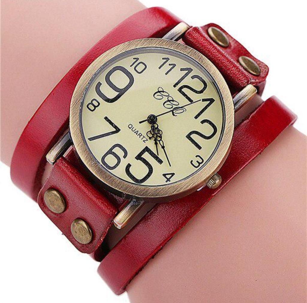 Vintage Leather Bracelet Watch Women Leather Bamboo Women's Watch Classic