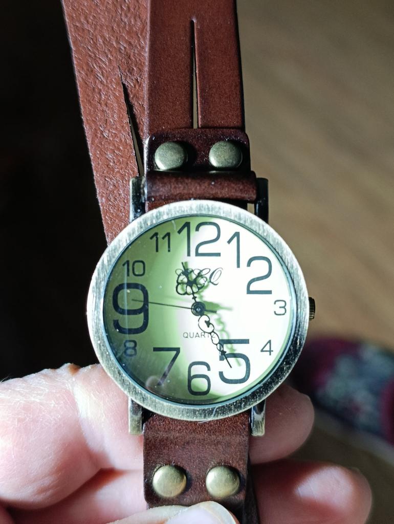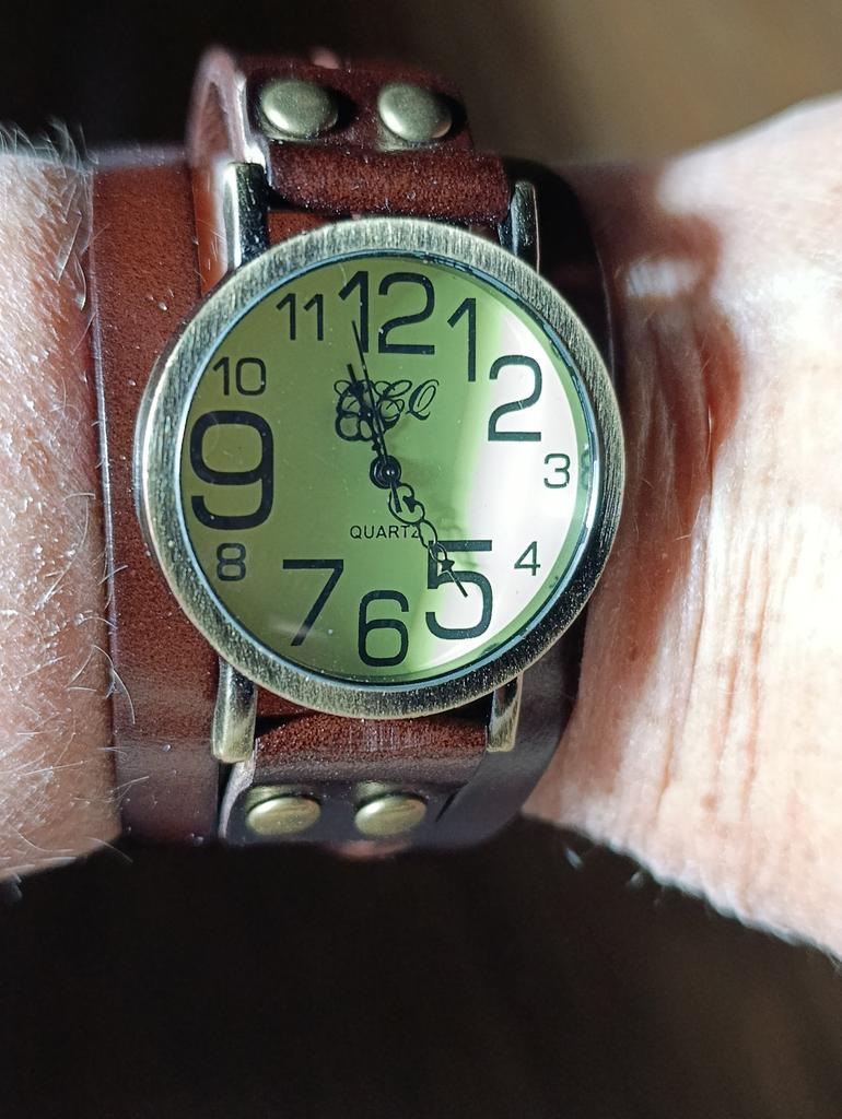 The watch doesn't work, the winding mechanism is stuck and the strap is large, for a thick wrist