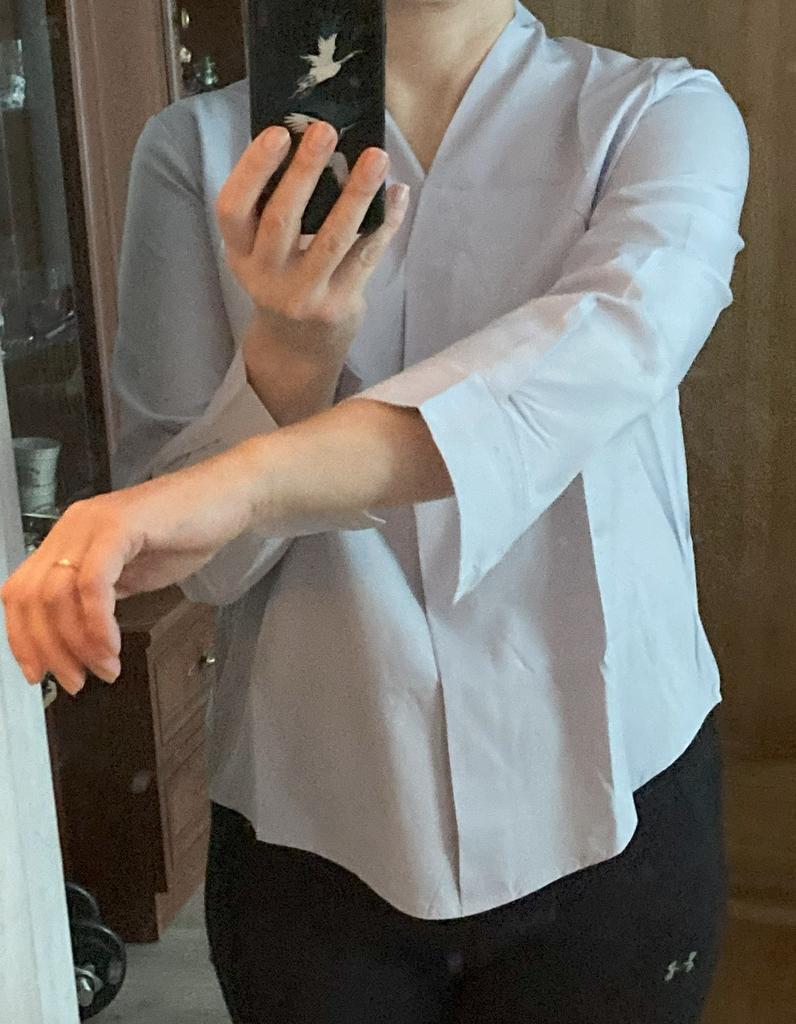 Very small, doesn't fit my 50 in the chest. The quality leaves much to be desired. But otherwise a nice blouse