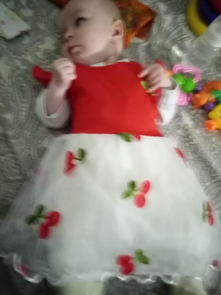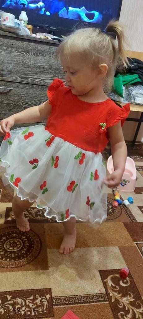 The dress is cool for this price, not yet measured, but I see what fits) We wear a size 86-92. A few threads stick out, but it's not scary ... I recommend the seller) Come on, happy)