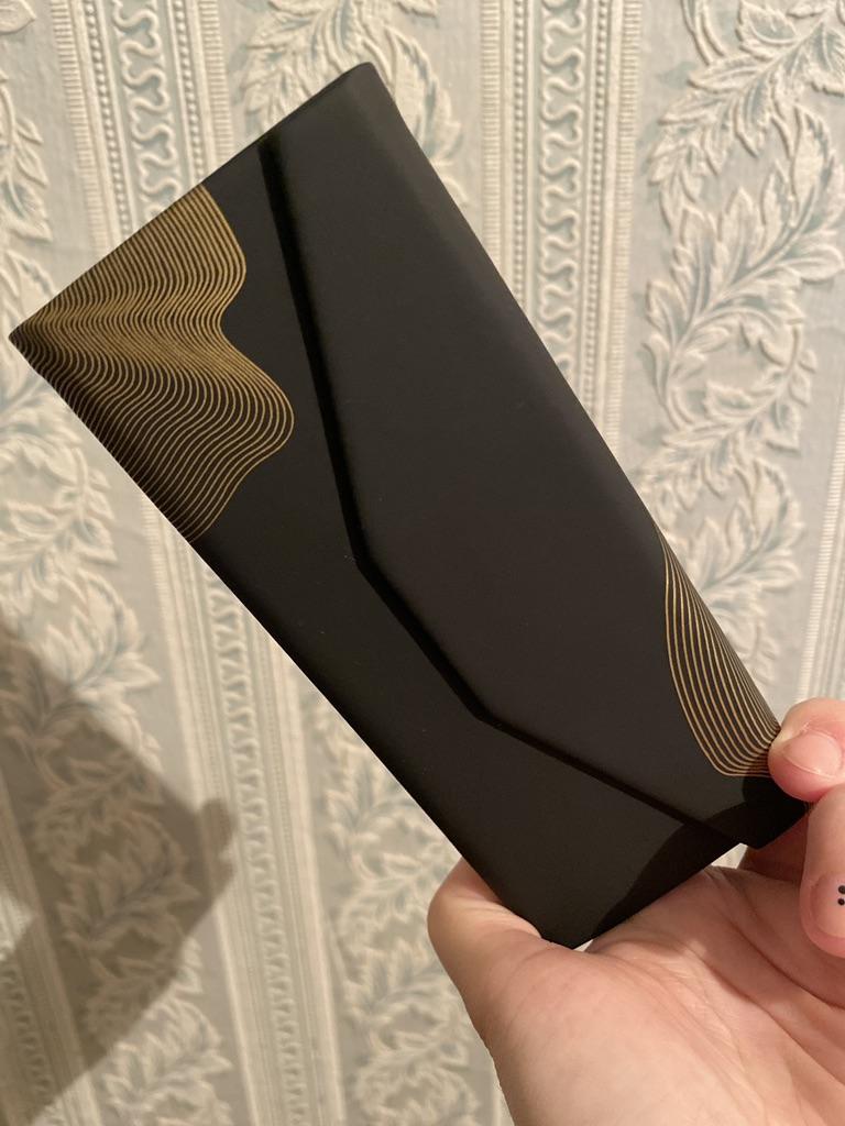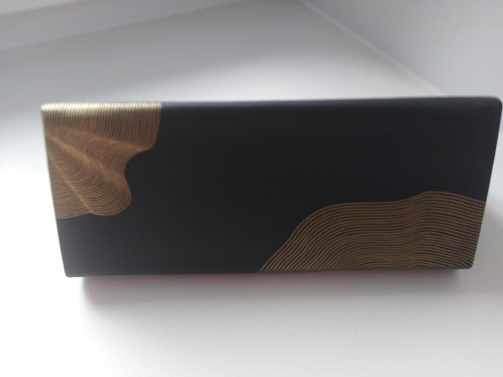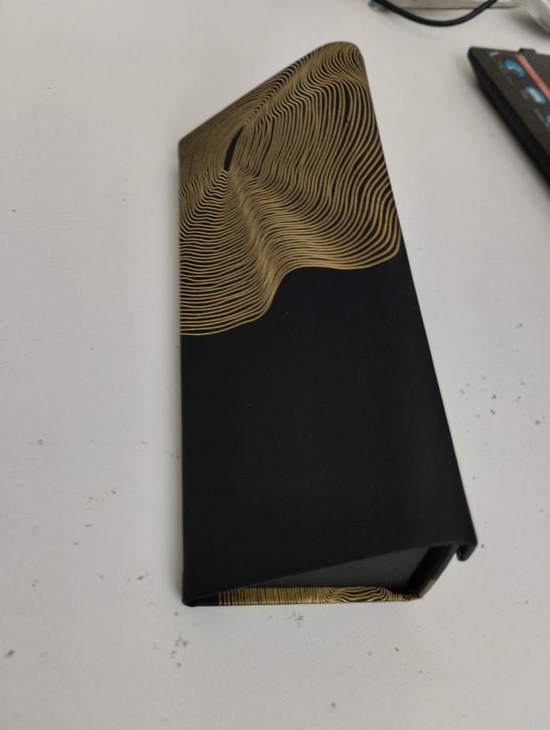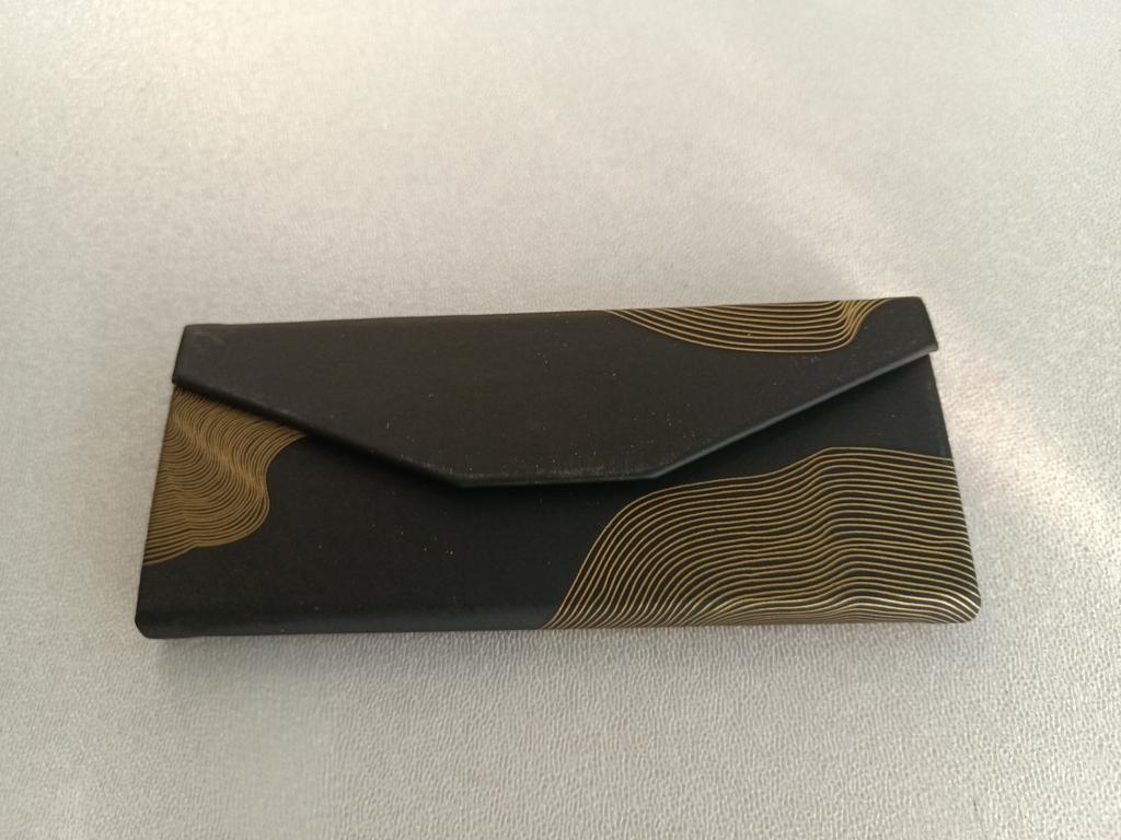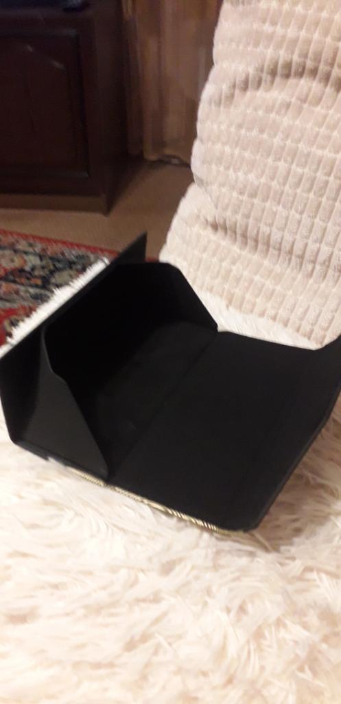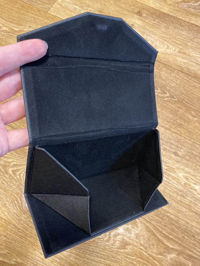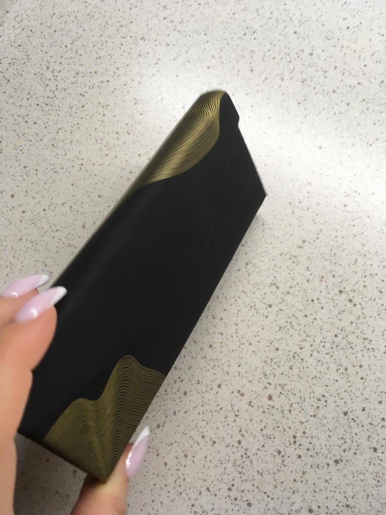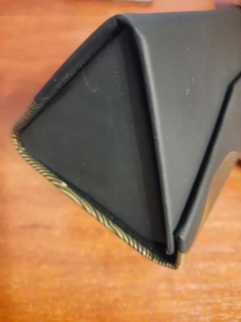 Super pretty. As a bellows possible to put thin or larger glasses on it. Super pretty black and gold