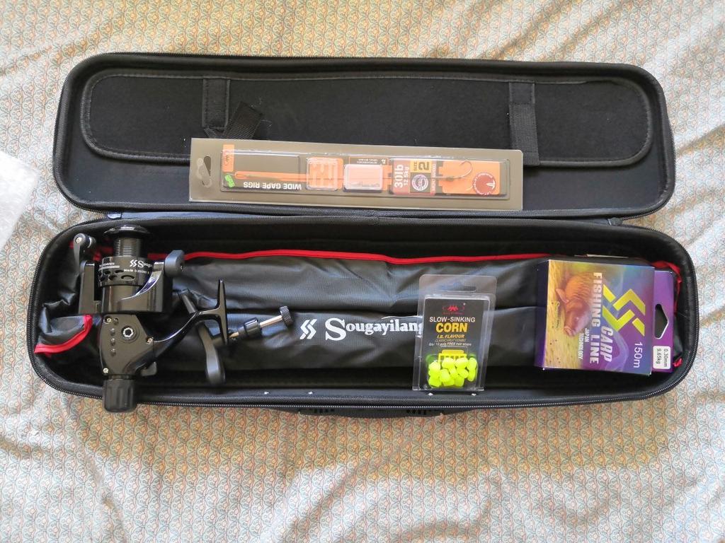 The rod is okay, the reel and line are rubbish, the rig is okay but the hook seems to be for a whale, the case is excellent