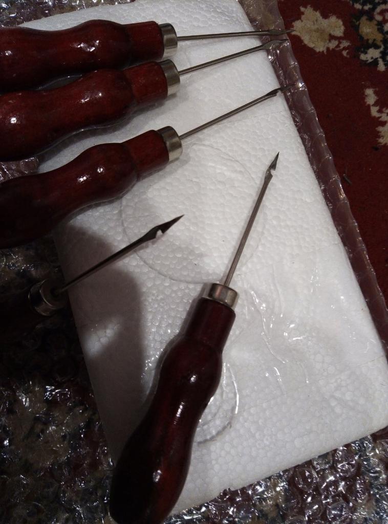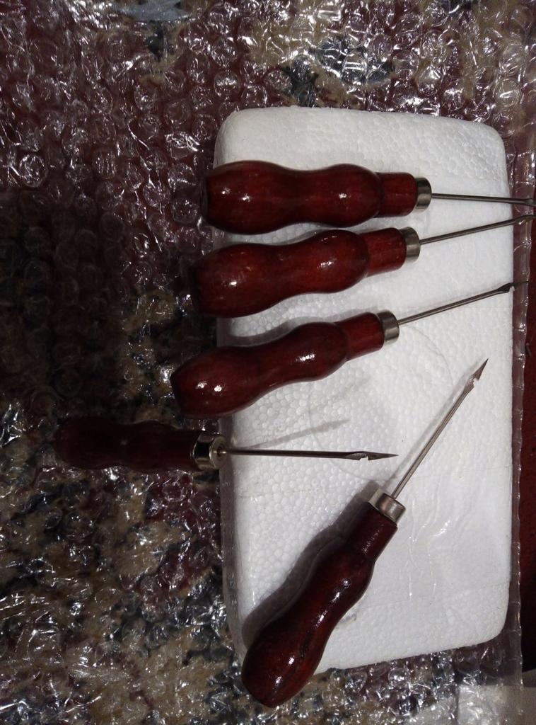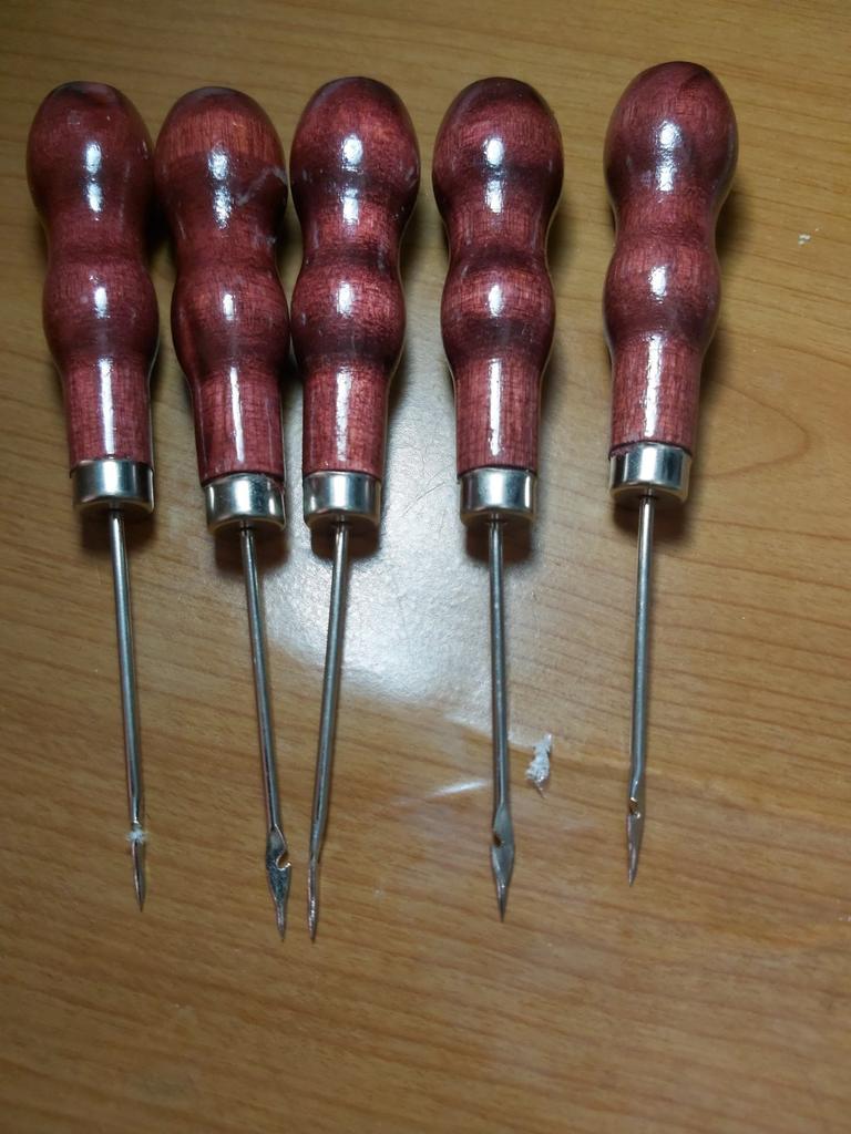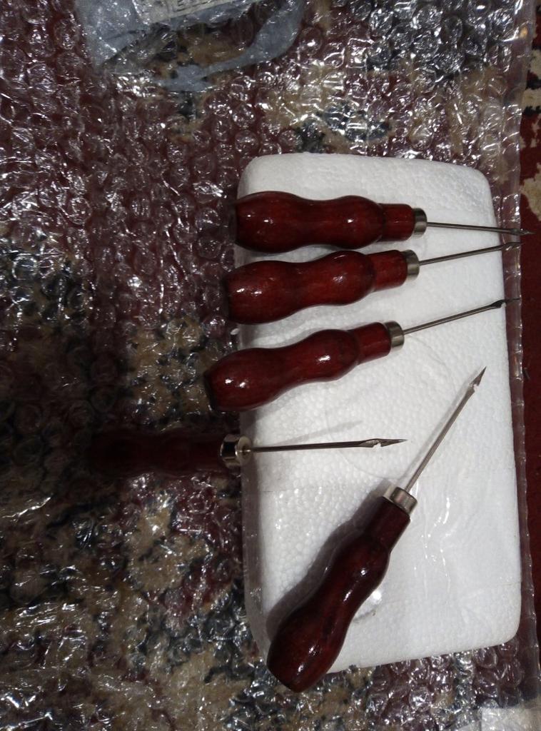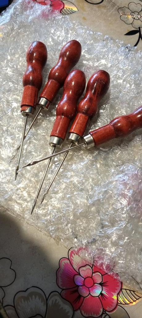 5 Pcs Red Leather Awl Leather Shoe Repair Hook Awl Hand Sewing Tool