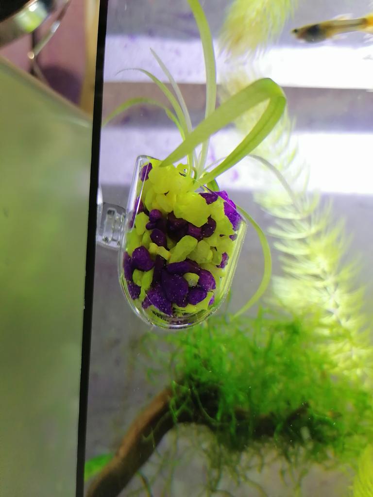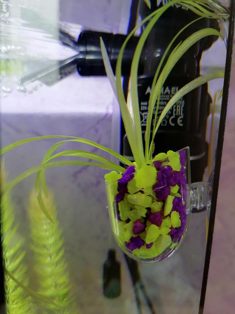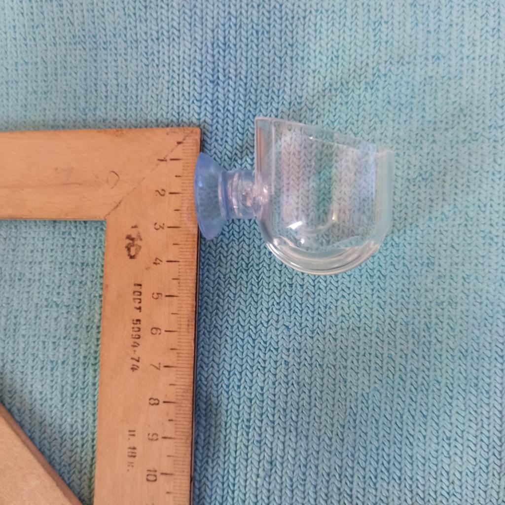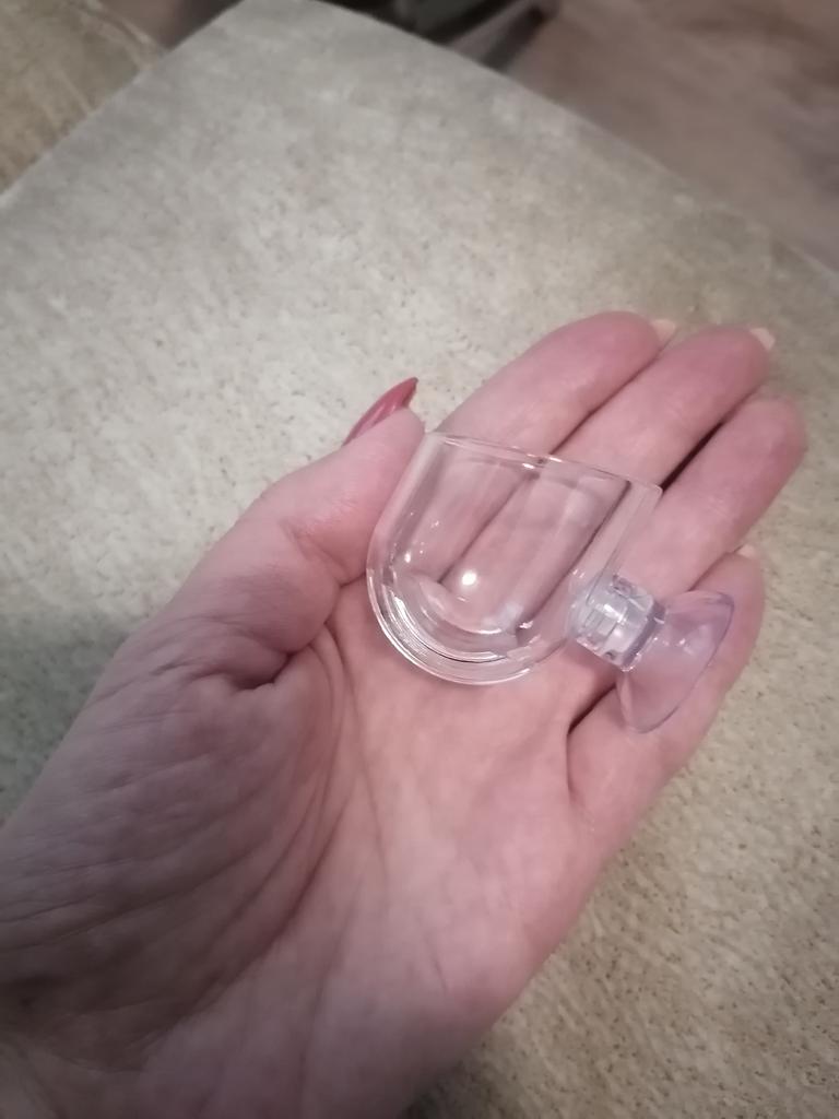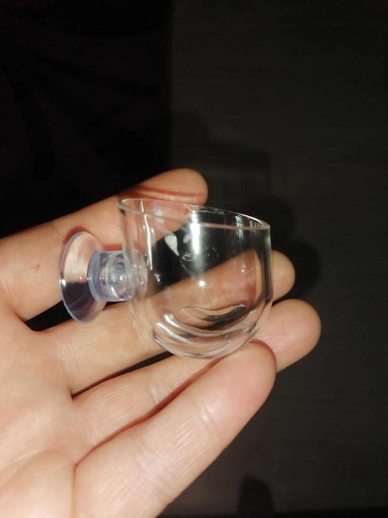 Mini pot for aquarium. For small plants or moss in the aquarium. Thick acrylic, high quality suction cup. The suction cup has a smell. Of the advantages - there are special holes at the bottom for water circulation. I recommend!