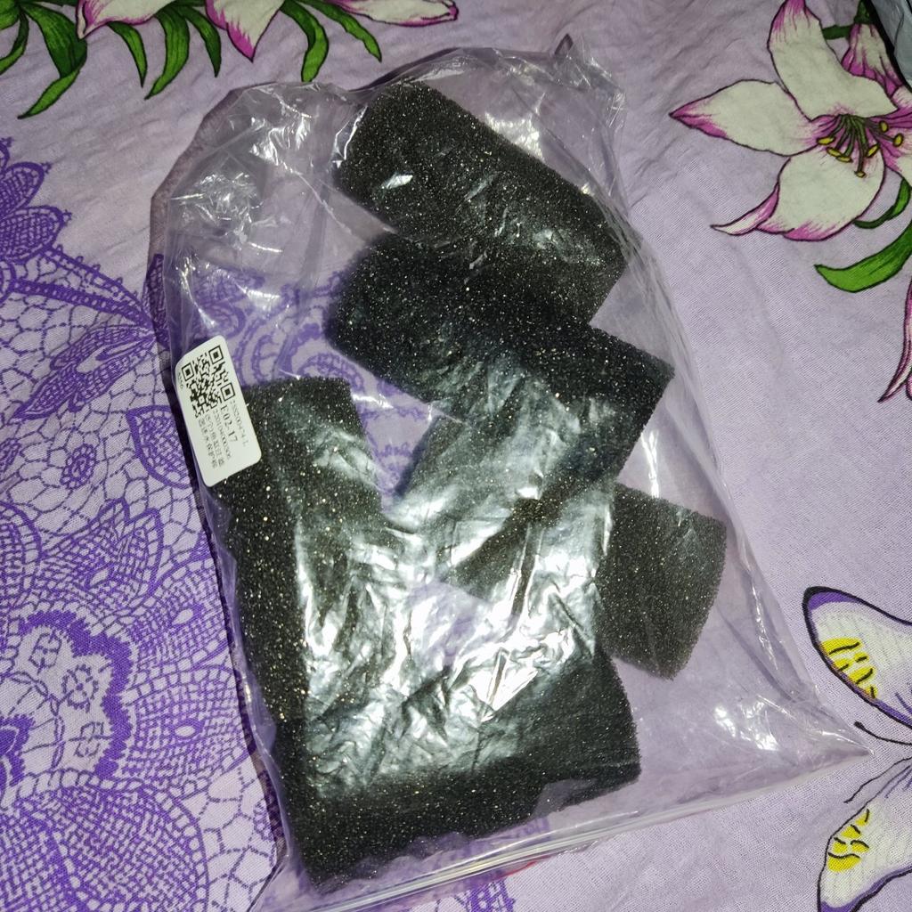 They are a bit small for my aquarium filter, but I used 2 small ones (I had to make a through hole in one), and everything is fine. Now I change them periodically. The foam is not loose, and it's the same after disinfection. I recommend it.