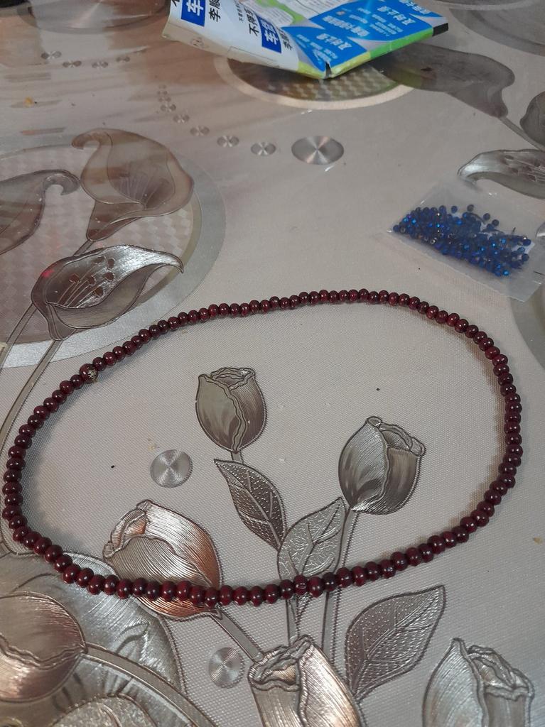 The rosary is not long, the beads are small but beautiful, with an elastic band