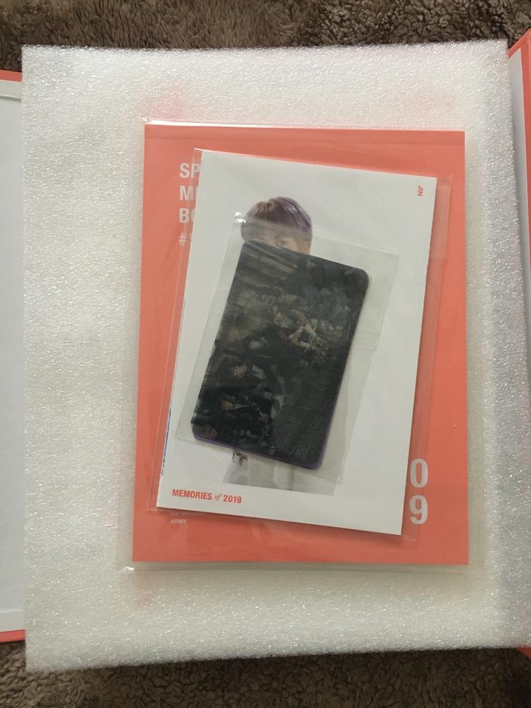 Very happy and excited with the order!! The Memories is official and in very good condition, only one corner is creased, but overall its condition is great. It arrived in three days in Spain. I got nam on the photocard! Many thanks to the seller for the extra photocards👏🏼😍💜