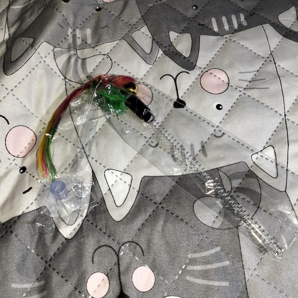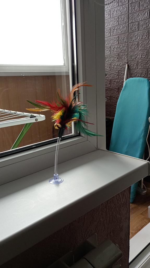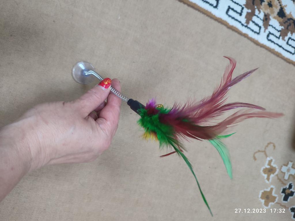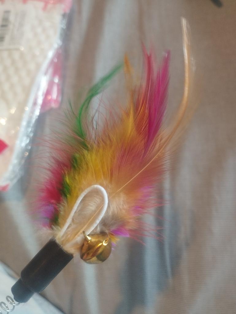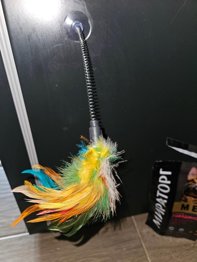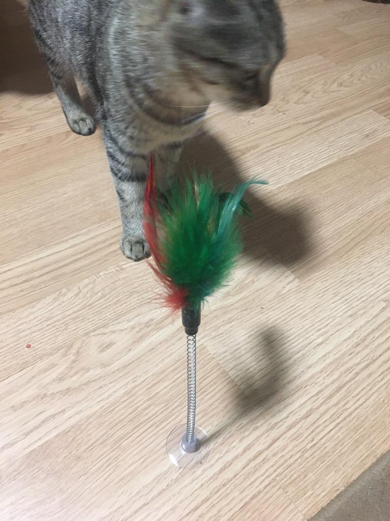 The cat is delighted, it sticks normally, the feathers flew out a little during the game ๐