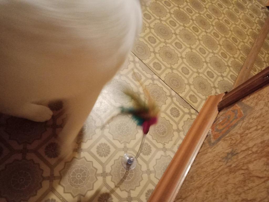 A wonderful toy that keeps the cat entertained when she is bored. It's true, we're a little crazy about the jingle bell, but it's not about us. He is happy and that is important ๐๐
