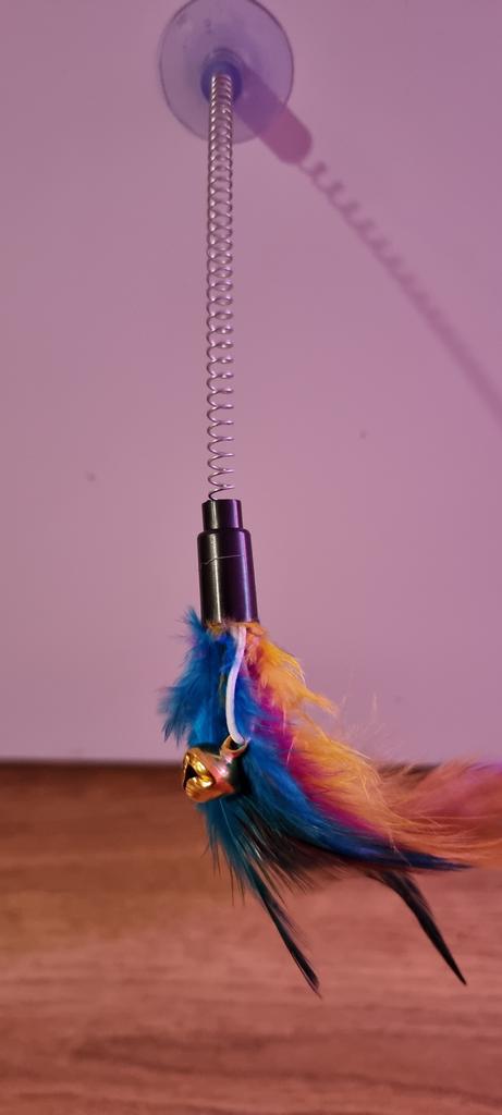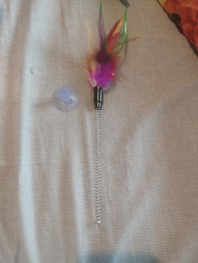 The suction cup doesn't stick... the cat gnawed all the feathers the first time))) and it plays like that even without feathers