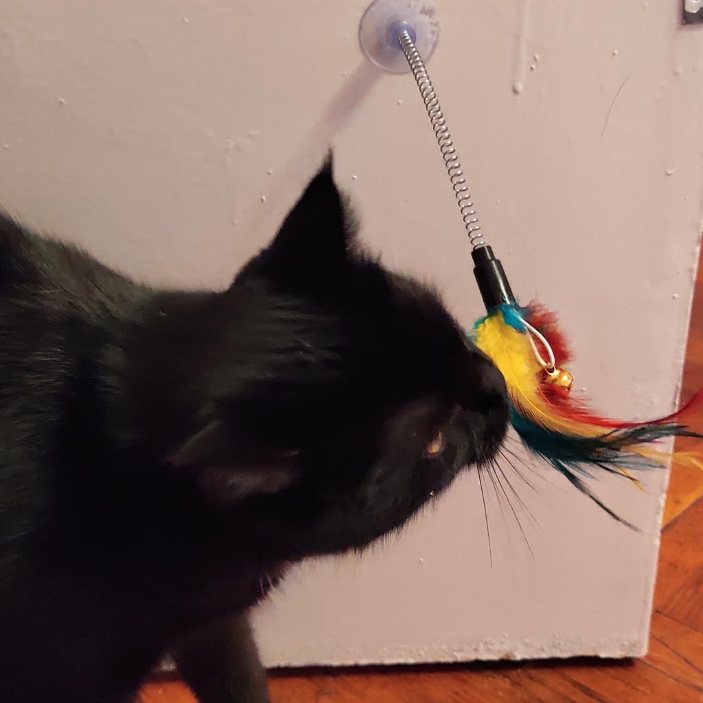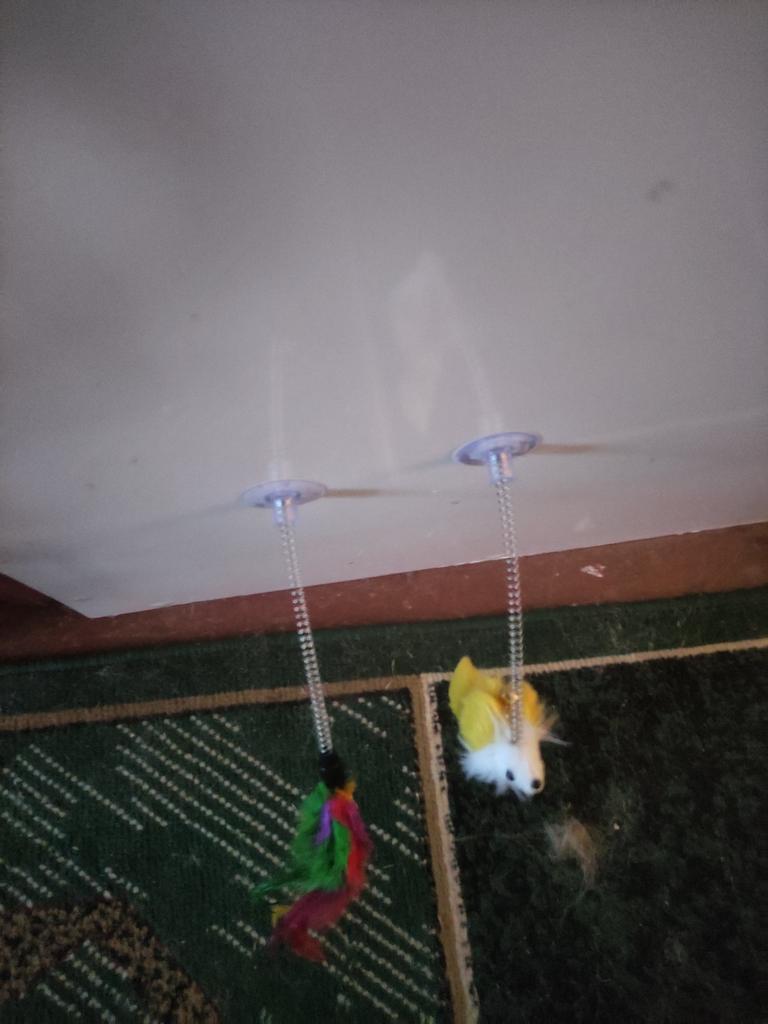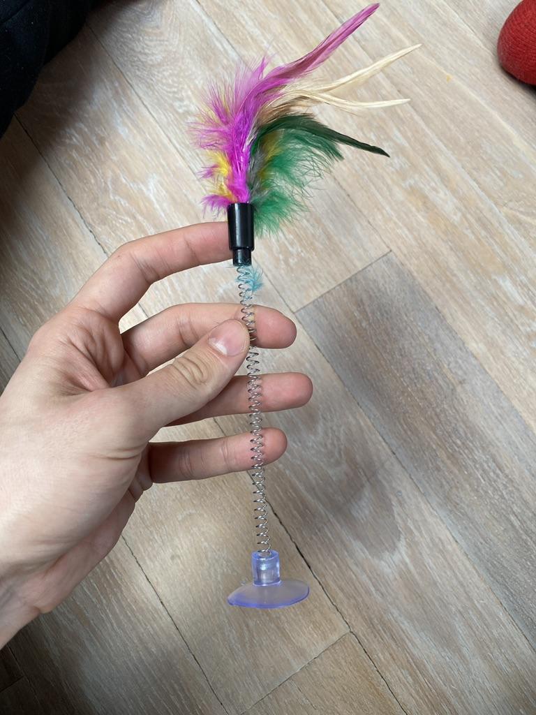A toy for a kitten, just right, but the spring is too easy to insert/pull out of the suction cup; I had to put it on silicone glue, otherwise the baby would pull it out during play. The suction cup holds rather weakly.
