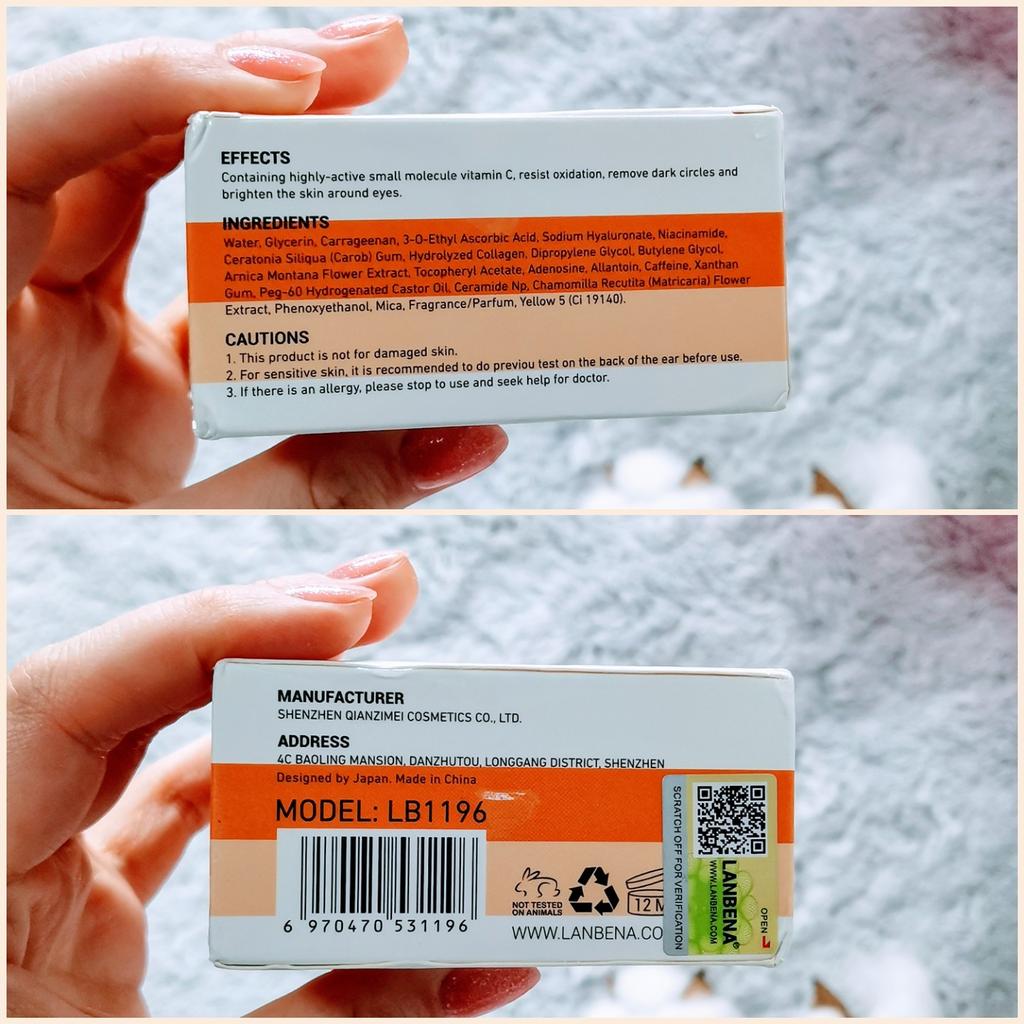 ⭐⭐⭐⭐⭐ Moisturizing eye patches with vitamin C - Lanbena The order was delivered in 17 days as a registered mail and was well packed in a bubble envelope. In addition, the goods were packed in their own box and sealed in foil. This is a tin full of masks for the under-eye circles. This time I ordered patches from the "Lanbena" brand. Also, these patches are not for myself but for a friend, so I can't just test some of them. As usual with these jars, 60 pieces are also supplied in this pack. Therefore, the product is sufficient for a total of 30 applications. The masks are made of collagen and are very moist and immersed in a liquid. These patches are enriched with vitamin C. As usual, the jar has a lid between it, which keeps everything tight and prevents the goods from leaking. A kind of spoon or spatula is also supplied, which makes it easier to remove the individual masks if you don't have long fingernails. The ingredients are in English on the packaging. Masks of this type are actually all the same. They feel wobbly, wet and cool and slide down a bit at first. After about a minute you should readjust them, then the masks stayed where you placed them. I wear them until they dry and fall off. This works best for me. I would be happy to recommend both the product and the seller. Instagram : mad_lammy