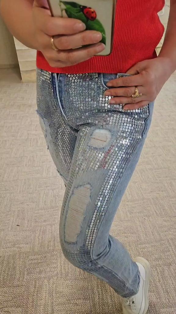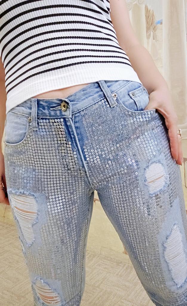Sexy Low-waist Slim Jeans Patchwork Embroidery Sequins Denim Pants Washed Jeans