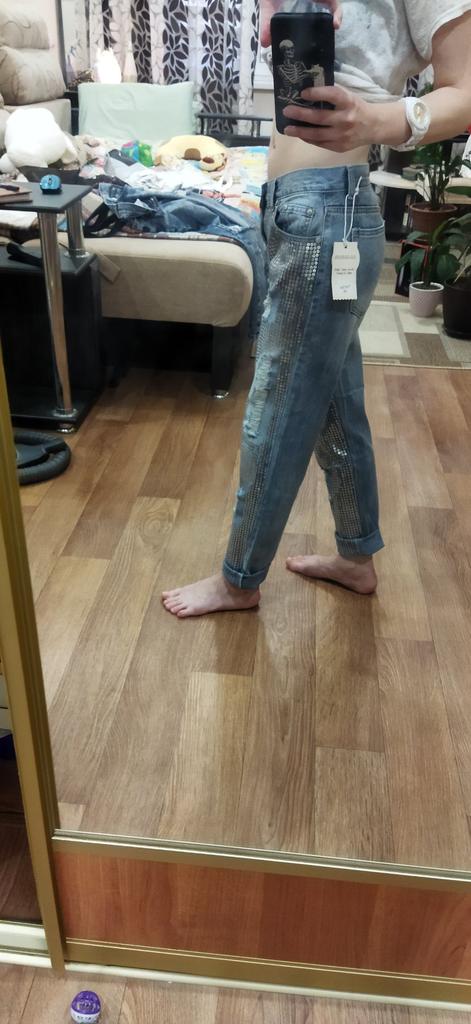 Girls! Jeans are worth their price. You won't regret it - they are high-quality, fit well, and look expensive. But: keep in mind - I'm ordering them for the second time (I bought my first a few years ago and made a mistake with the size because I ordered my usual size "m"). Then I got upset and didn't order any more. Time passed, I calmed down, and the desire to buy them again remained because they are really cool. But this time I took a size larger - that is, L and I'm happy as a rock. So for my parameters, height 165, hips - 97, waist -57, they are perfect! They don't stretch, by the way! Buy them, you won't regret it!