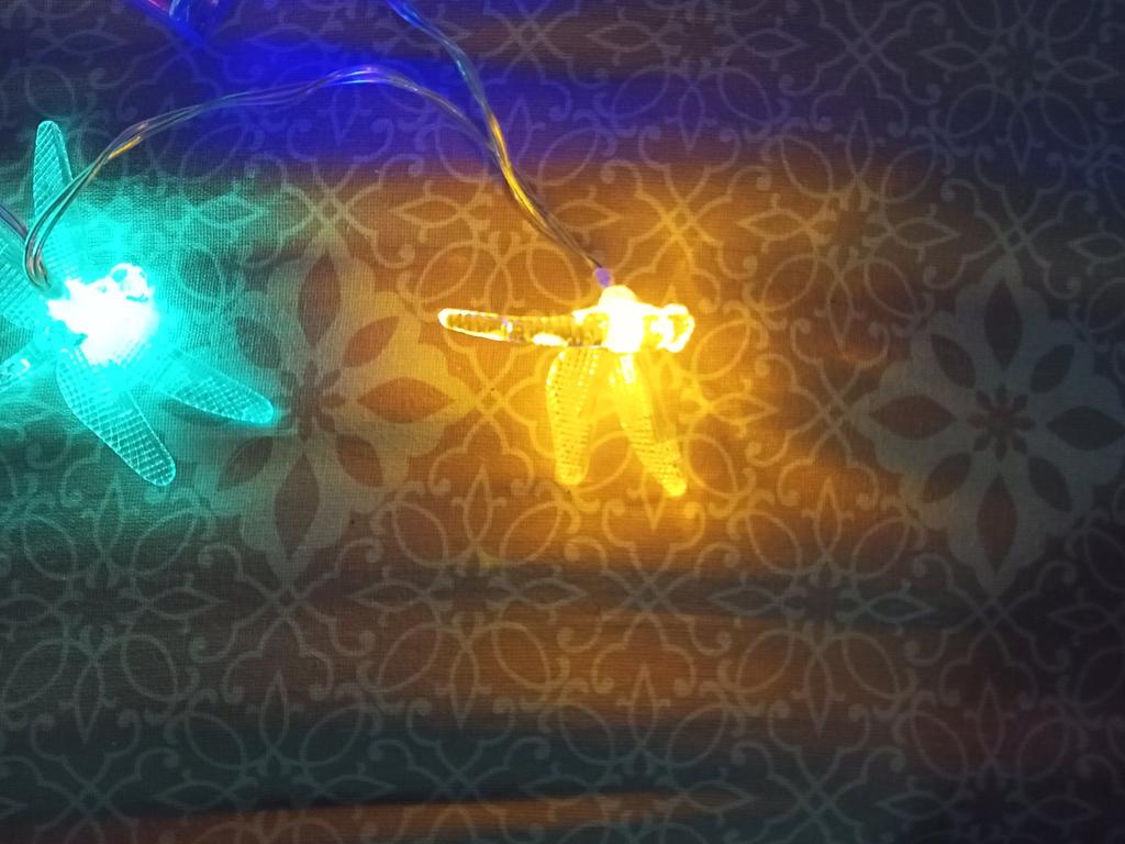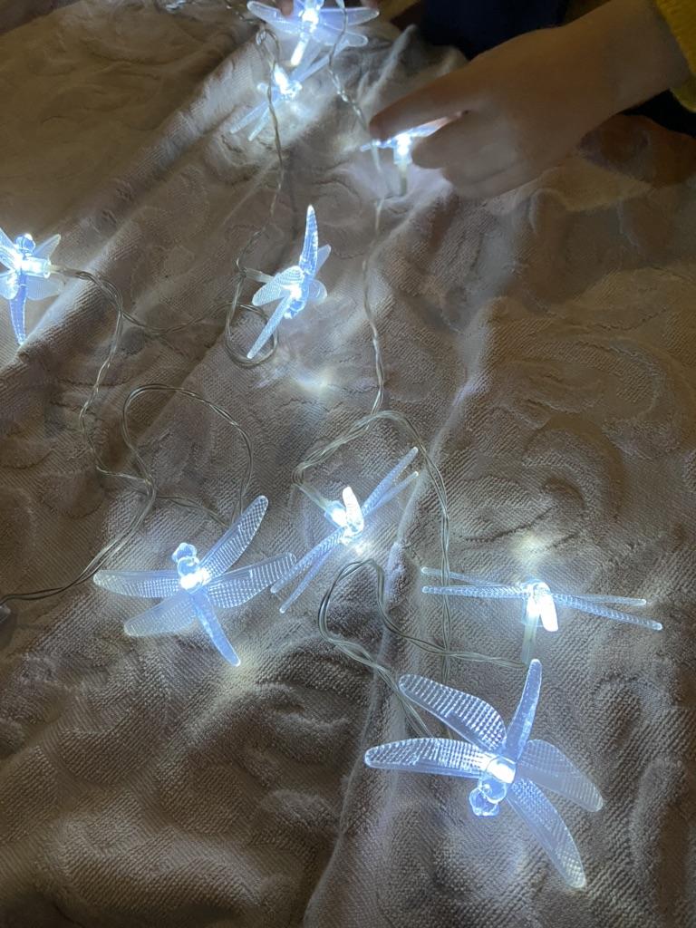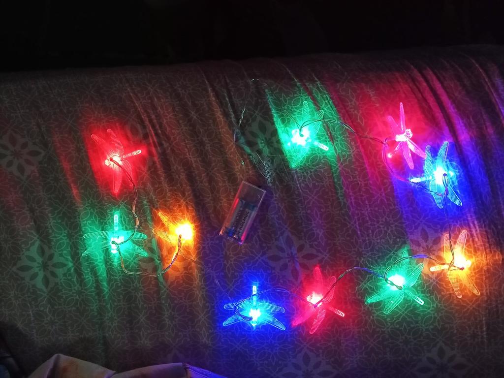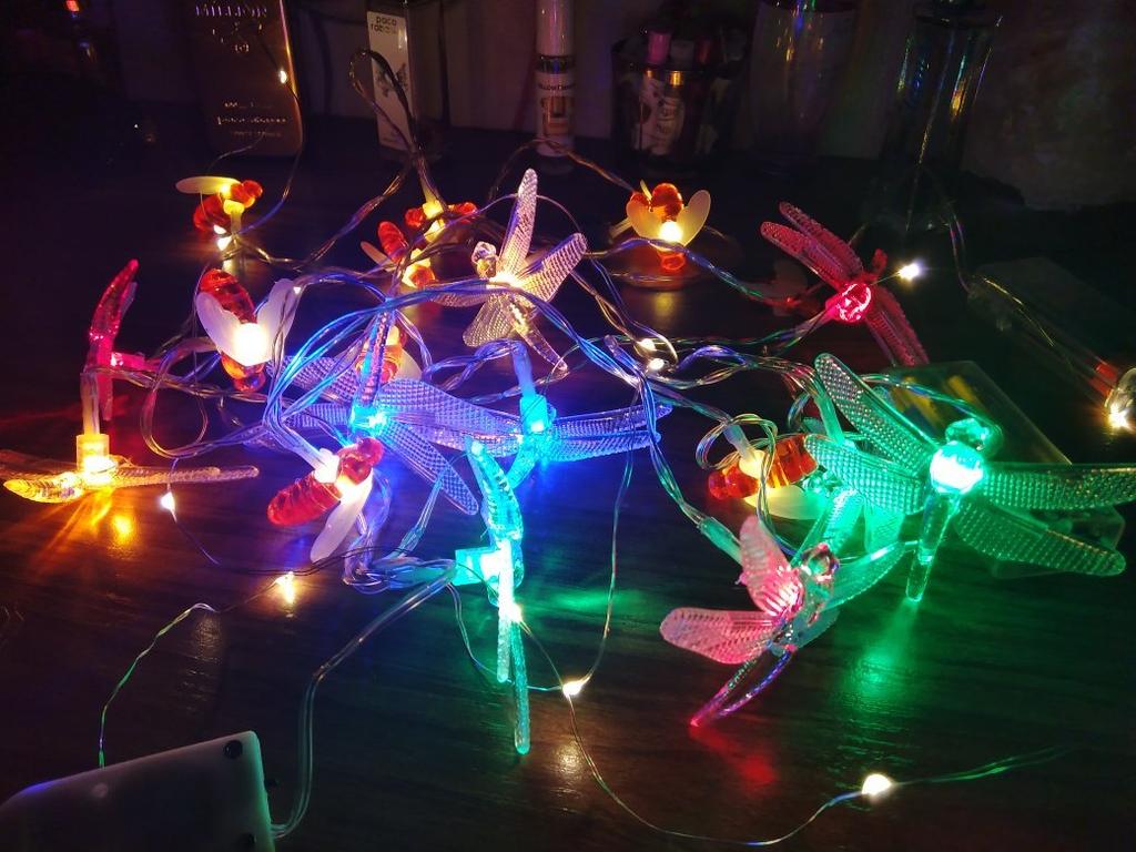 Two dragonflies broke their wings, the garland ended up working on 2 finger batteries. Very small for your money.