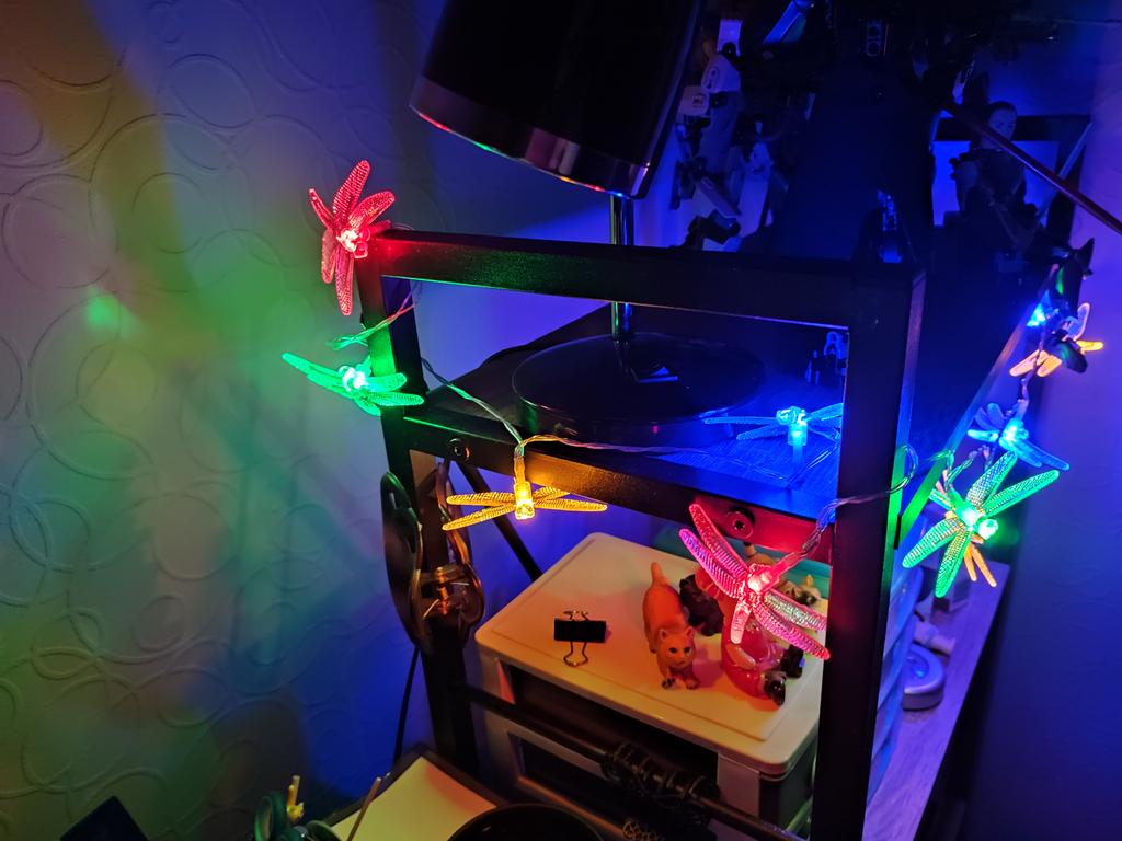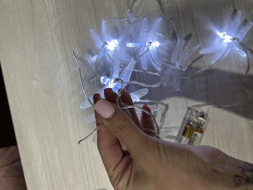 Bright garland with large plastic dragonflies. Not a single insect was broken during delivery.