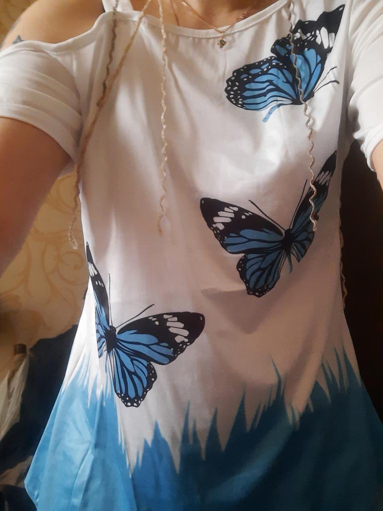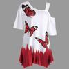 Women Fashion Butterfly Print One Shoulder Short Sleeve Tunic T-shirt Loose Blouse Tops Plus Size Fashion T-shirt